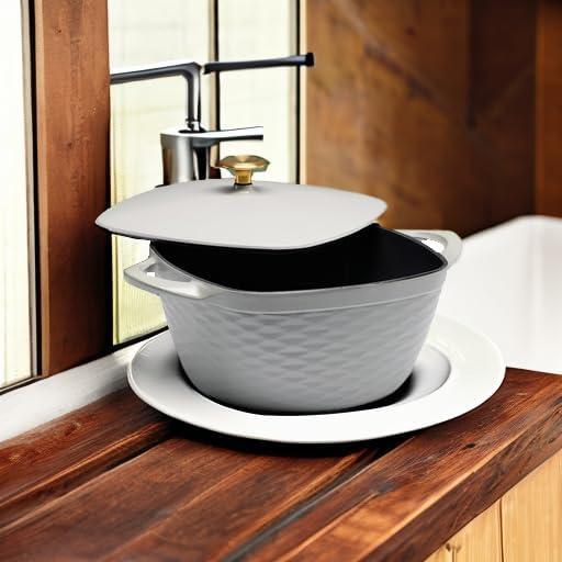 Prisma 7 Qt Enameled Cast Iron Covered Square Dutch Oven (Gray)(Gray)