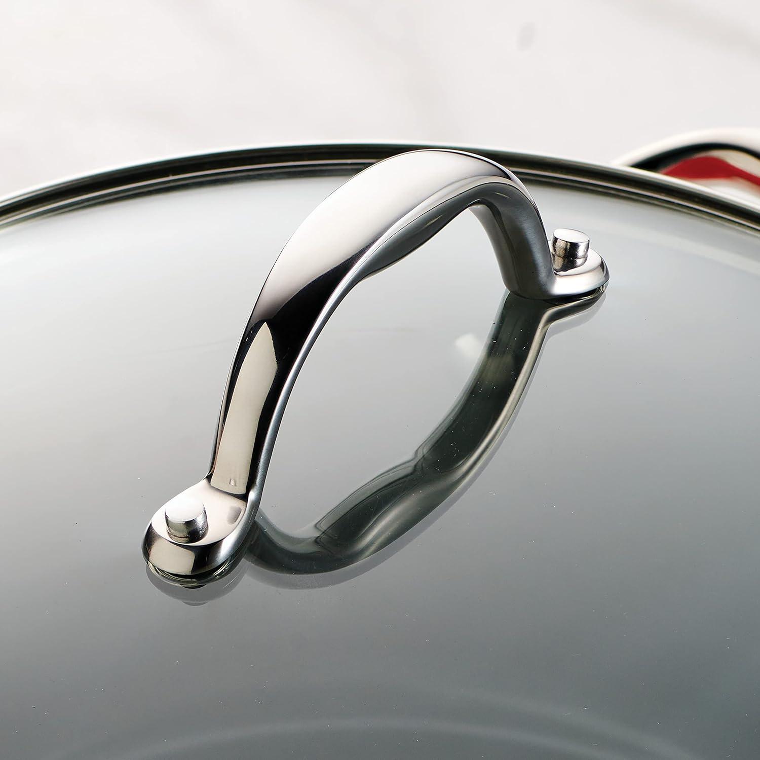 Convenient Lids & Handles: Tempered glass lids and stainless steel handles offer secure handling, visibility, and moisture retention while cooking