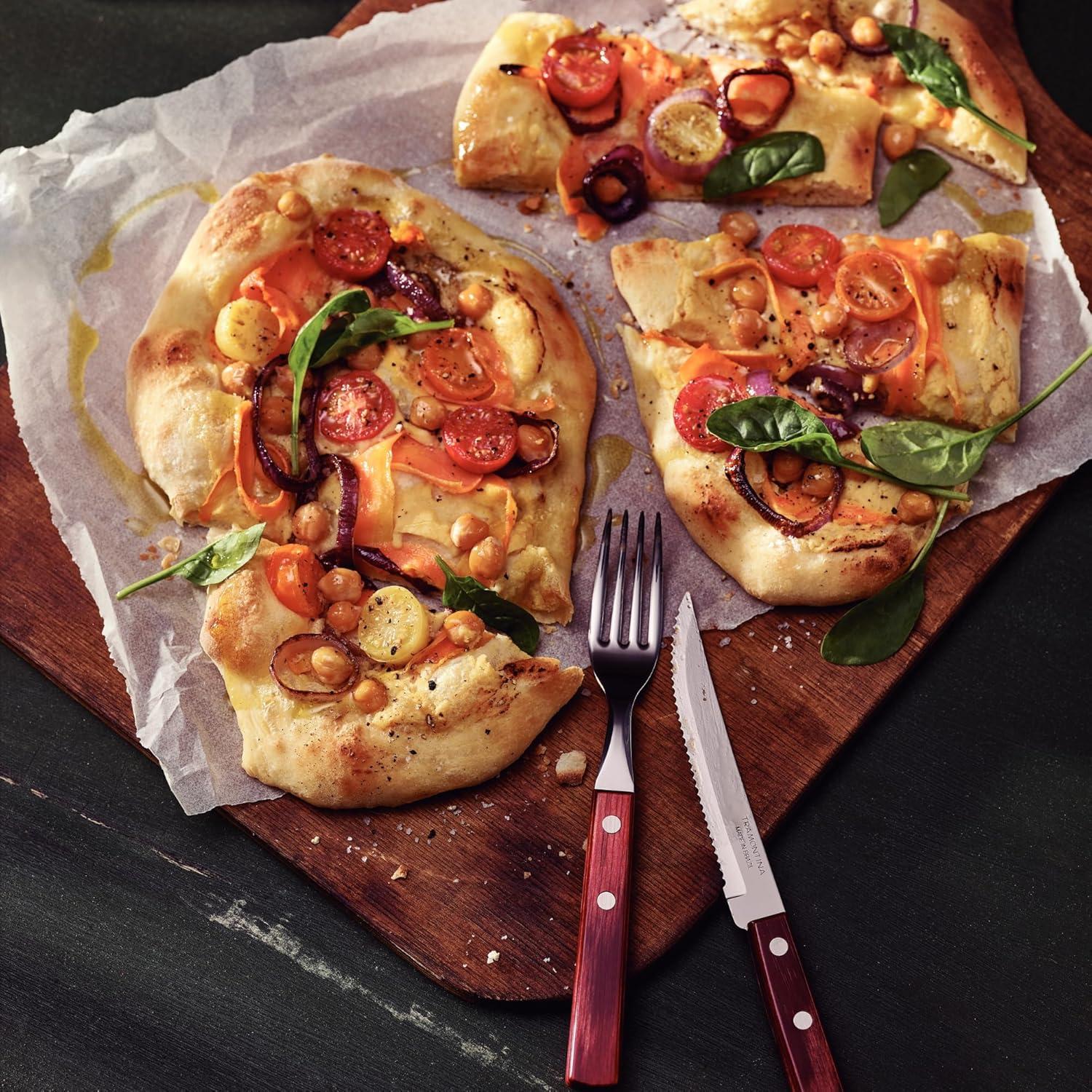 Tramontina Cutlery Set with Steak Knives, 24 Piece Sharp Knife, Forks, Teaspoons, Tablespoons with Wooden Handles, ‎Camping, Kitchen, Rustic, 22299050