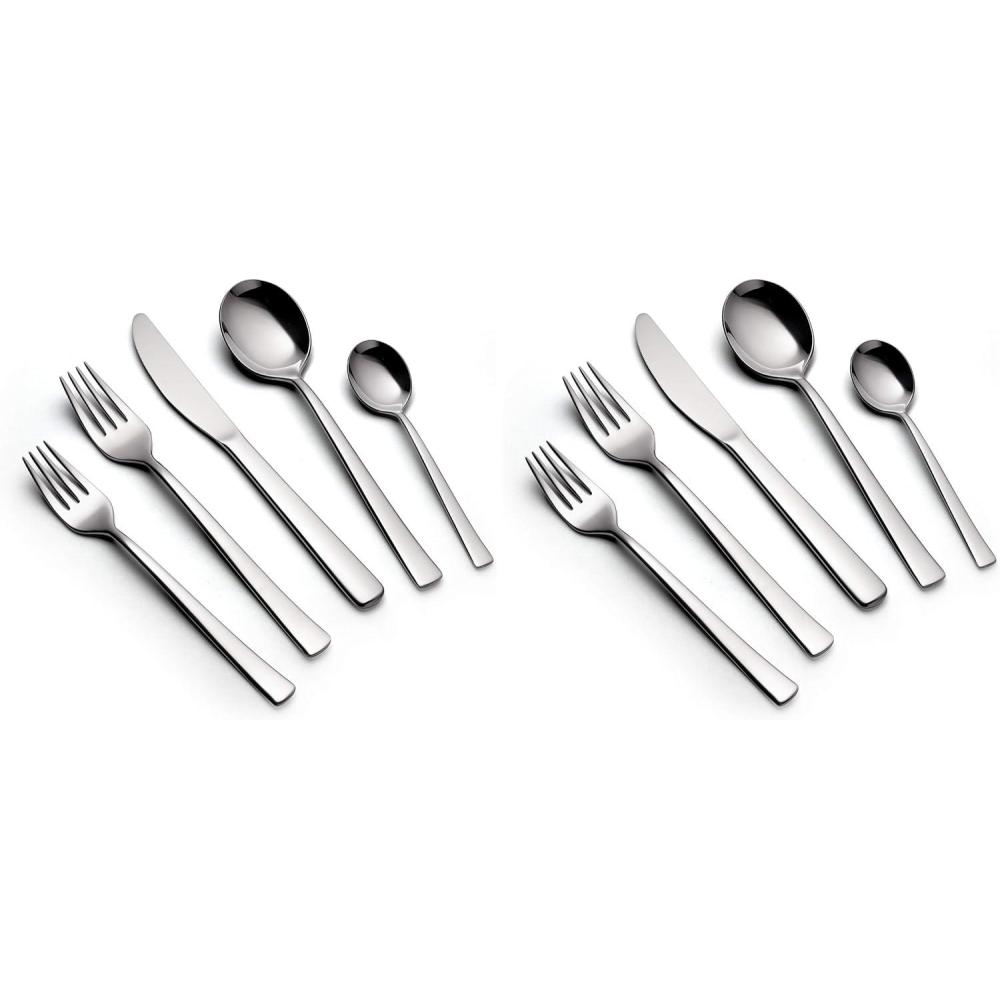 “Minimalist elegance” could be the catchphrase for the Monaco line. Streamlined handles culminating in understated detail make this set at home on formal tables or casual get-togethers. Crafted in durable 18/10 stainless steel, the forged knives, polished forks, and symmetrical spoons all feature a mirror finish and are manufactured for a long life.