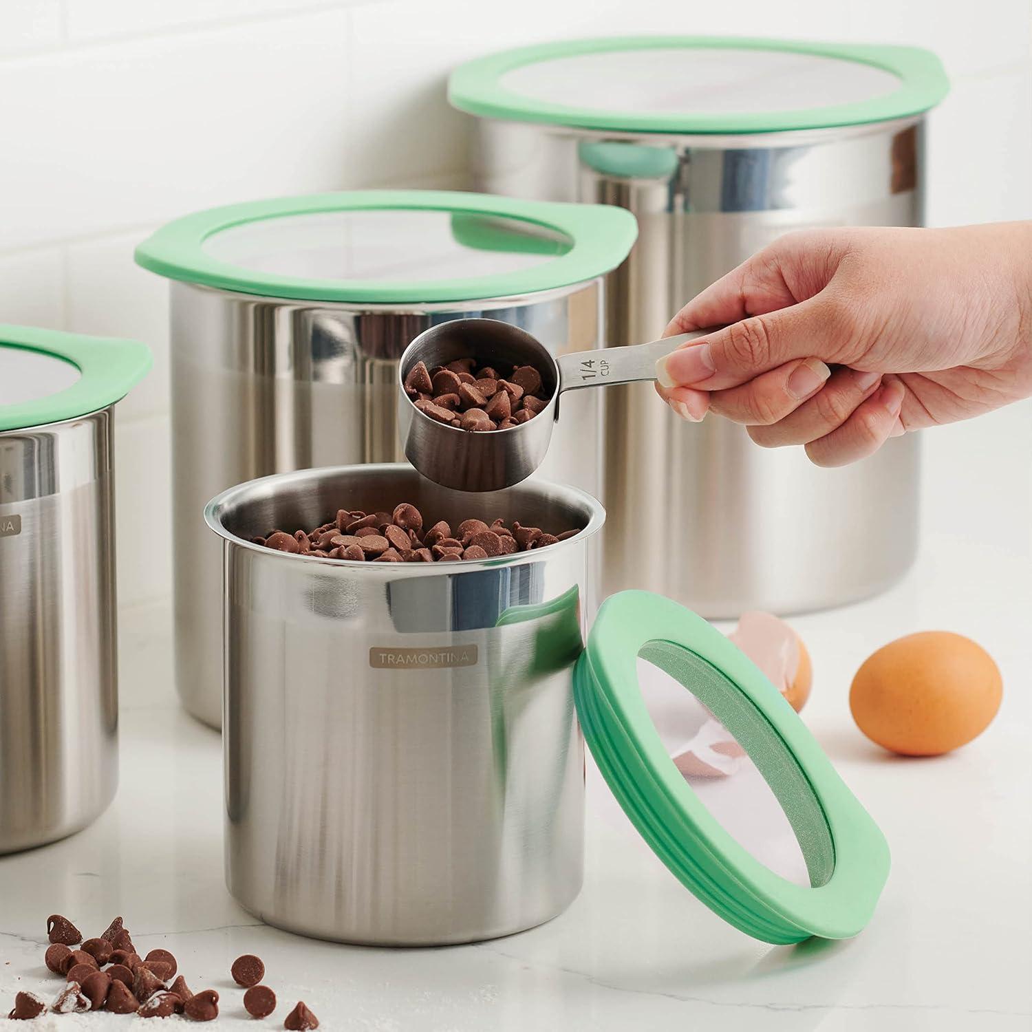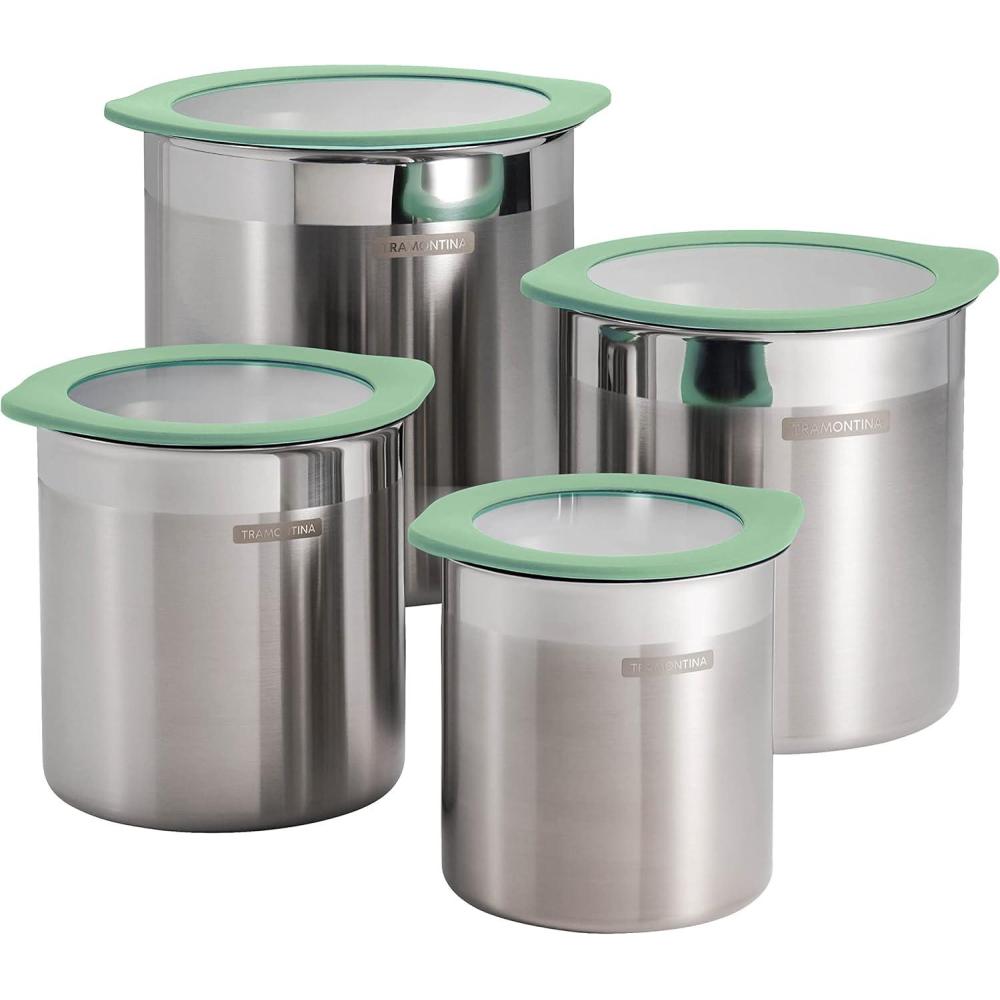 Tramontina 4 Pc Stainless Steel Canister Set Blue, 80204/026DS(Mint Green)