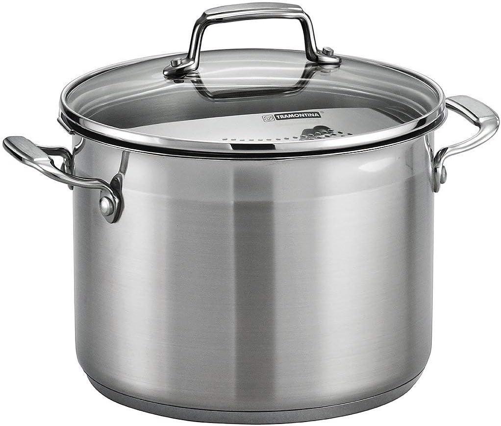 Tramontina's gourmet stainless steel 12 Qt stock pot provides exceptional performance combined with the impeccable beauty, durability and quality of stainless steel. Its base is impact-bonded with three layers, consisting of of an inner layer of 18/10 stainless steel, an aluminum core for conductivity and even heat distribution, and magnetic stainless steel outer layer which making it perfect for induction-ready cooktops. The Tramontina gourmet stainless steel 12 Qt stock pot rovides great all-in-one functionality for your cooking needs as stock pots are integral for making large batches of stew, soups, vegetables and seafood. The quality material of this stock pot ensures that it will last for a lifetime. Featuring an 18/10 stainless steel lid it also comes with riveted, precision cast stainless steel handles to give you that solid reliability you want when handling large amounts of food. This versatile stock pot is part of Tramontina's gourmet collection, a series of premium products engineered and manufactured with the finest design, materials and workmanship, outperforming similar products within the market and delivering the best quality and value to the cooking professional and enthusiast alike. It will perform exceptionally and is an elegant addition to your kitchen. Compatible with gas, electric, ceramic glass and induction cooktops. Diswasher and oven-safe (up to 500 f or 260 c). NSF-certified, assembled and packaged in USA and offered under a lifetime warranty.