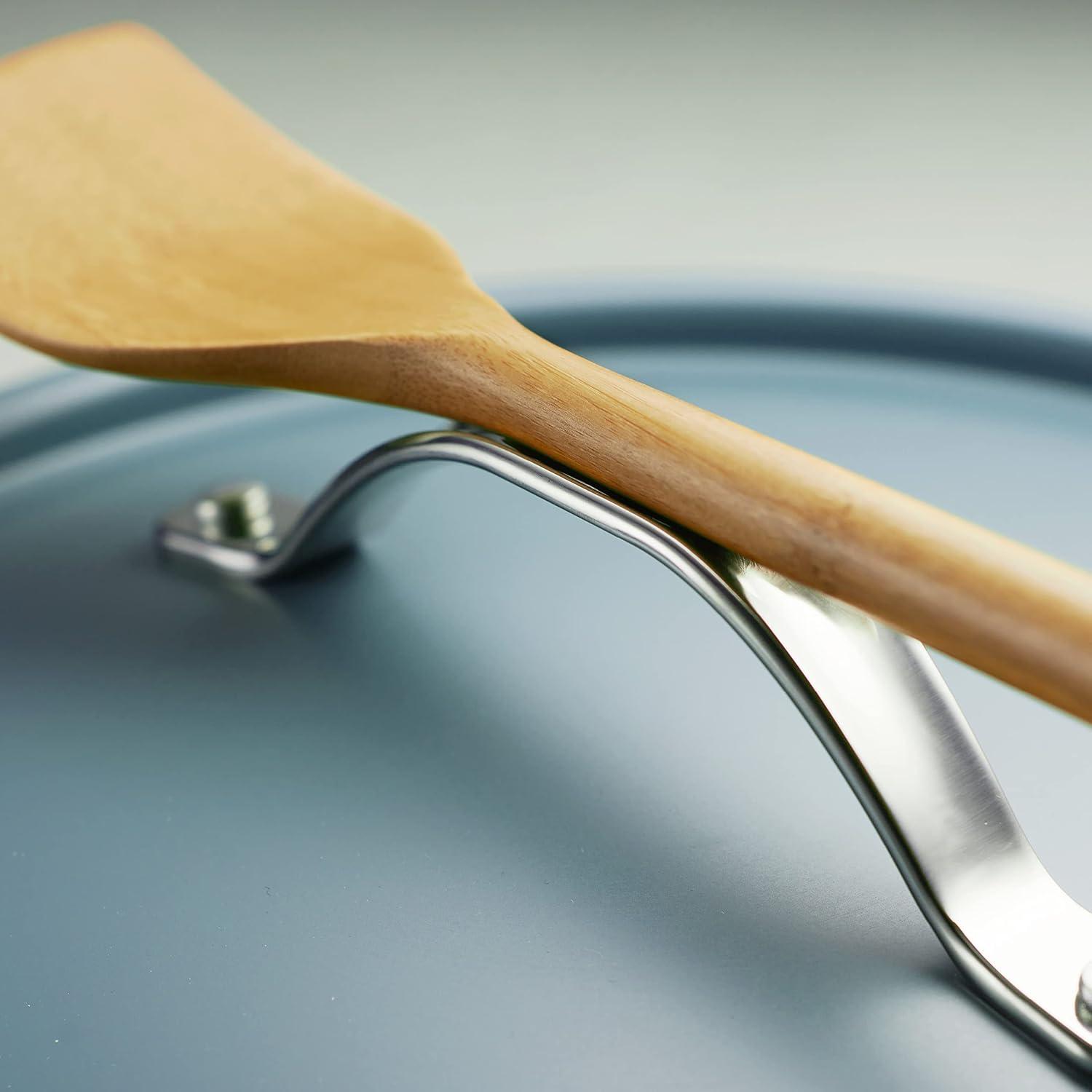 Clever Lid with Spoon Rest: Includes an aluminum lid with a stainless steel handle designed to also function as a convenient spoon rest.