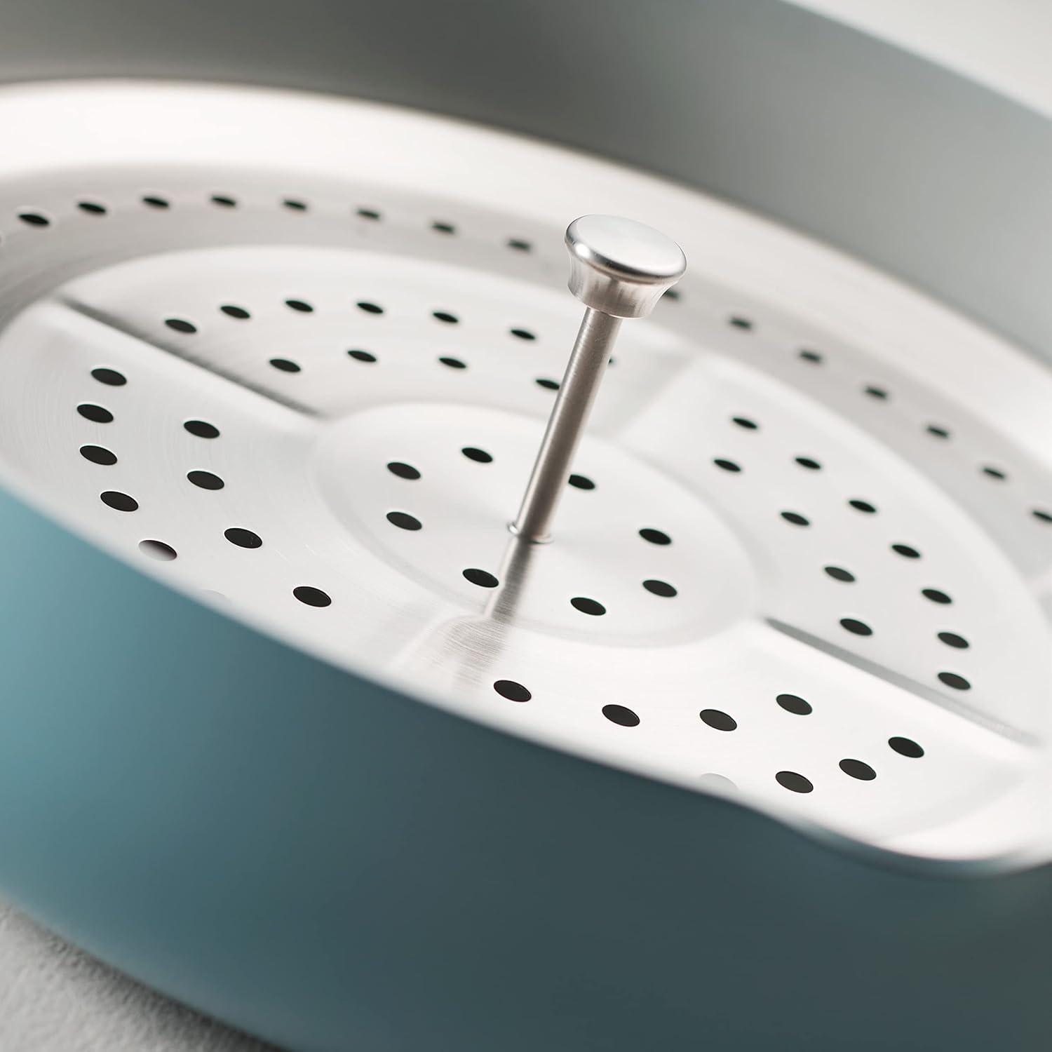 imageTramontina AllinOne Plus Pan Set 5Quart Ceramic Non Stick Cooking Pan with Lid Steamer Insert Bamboo Utensil and Trivet WhiteBlue