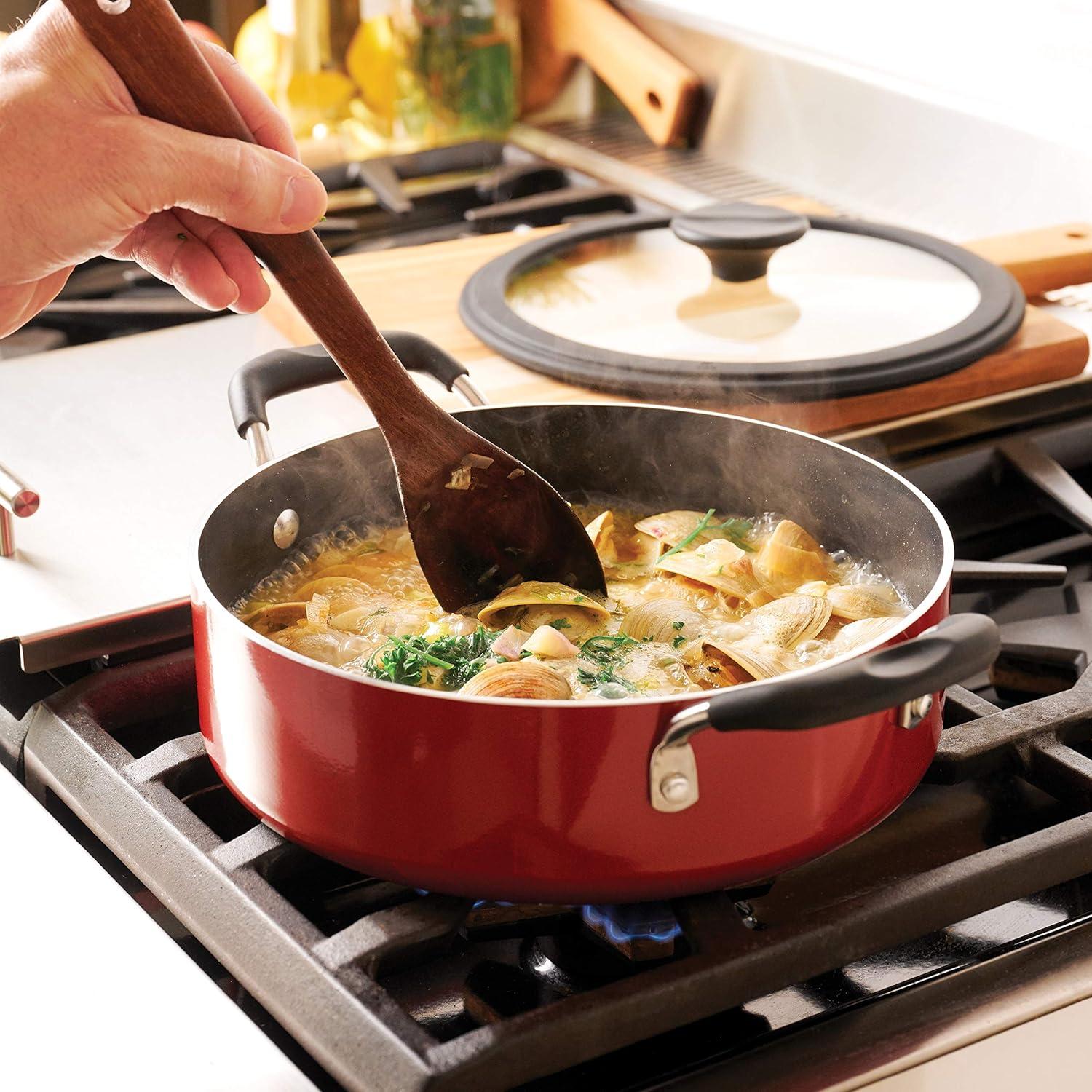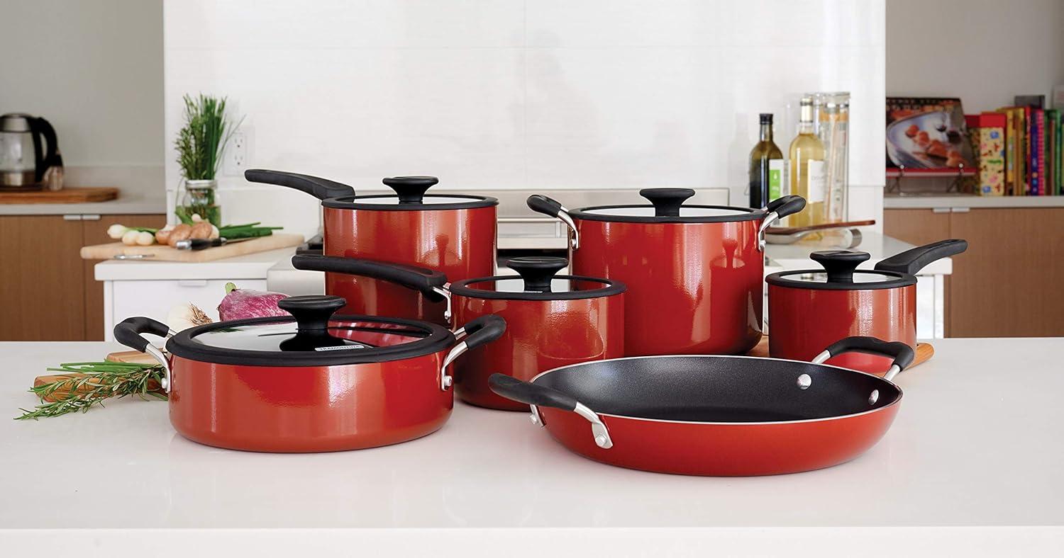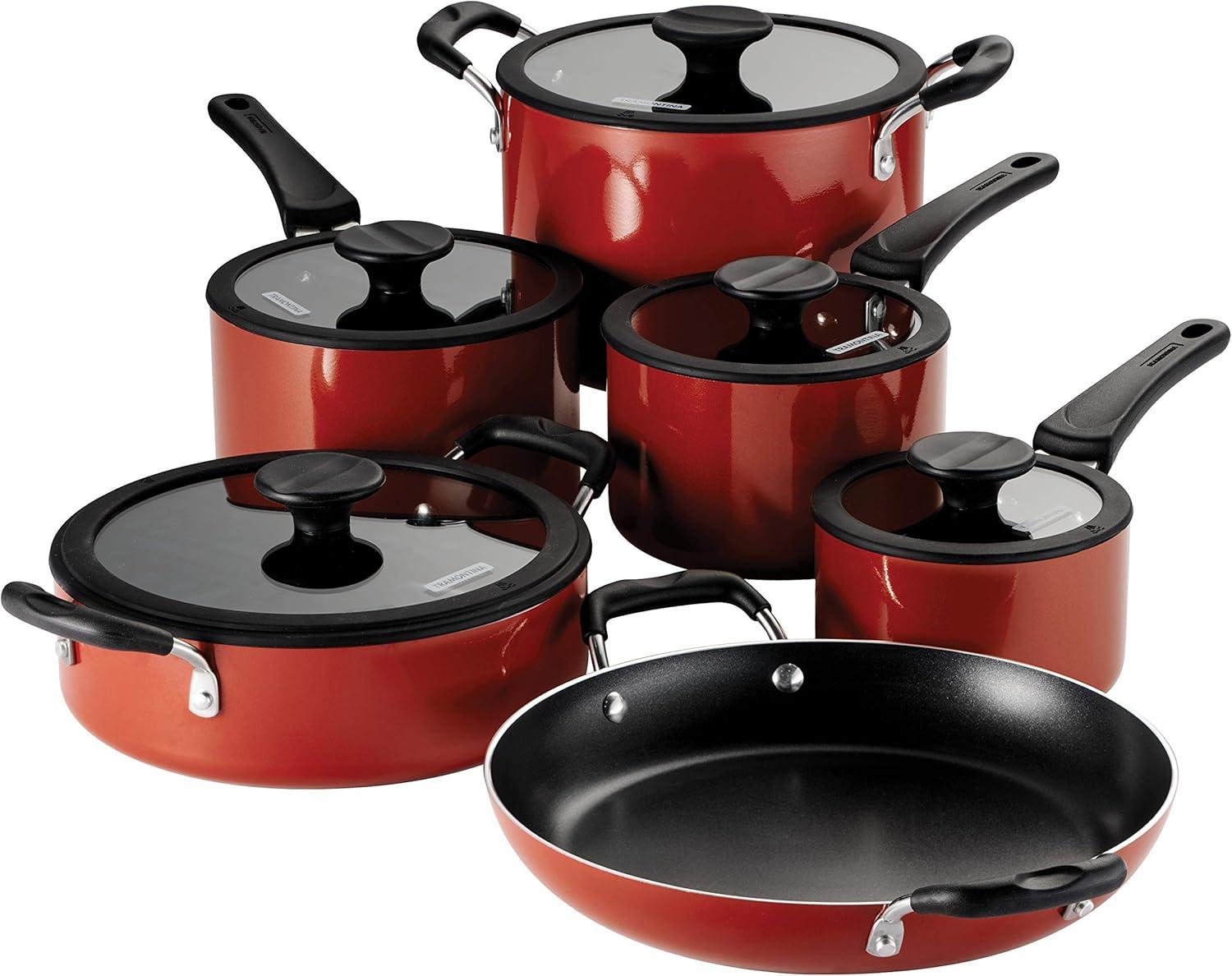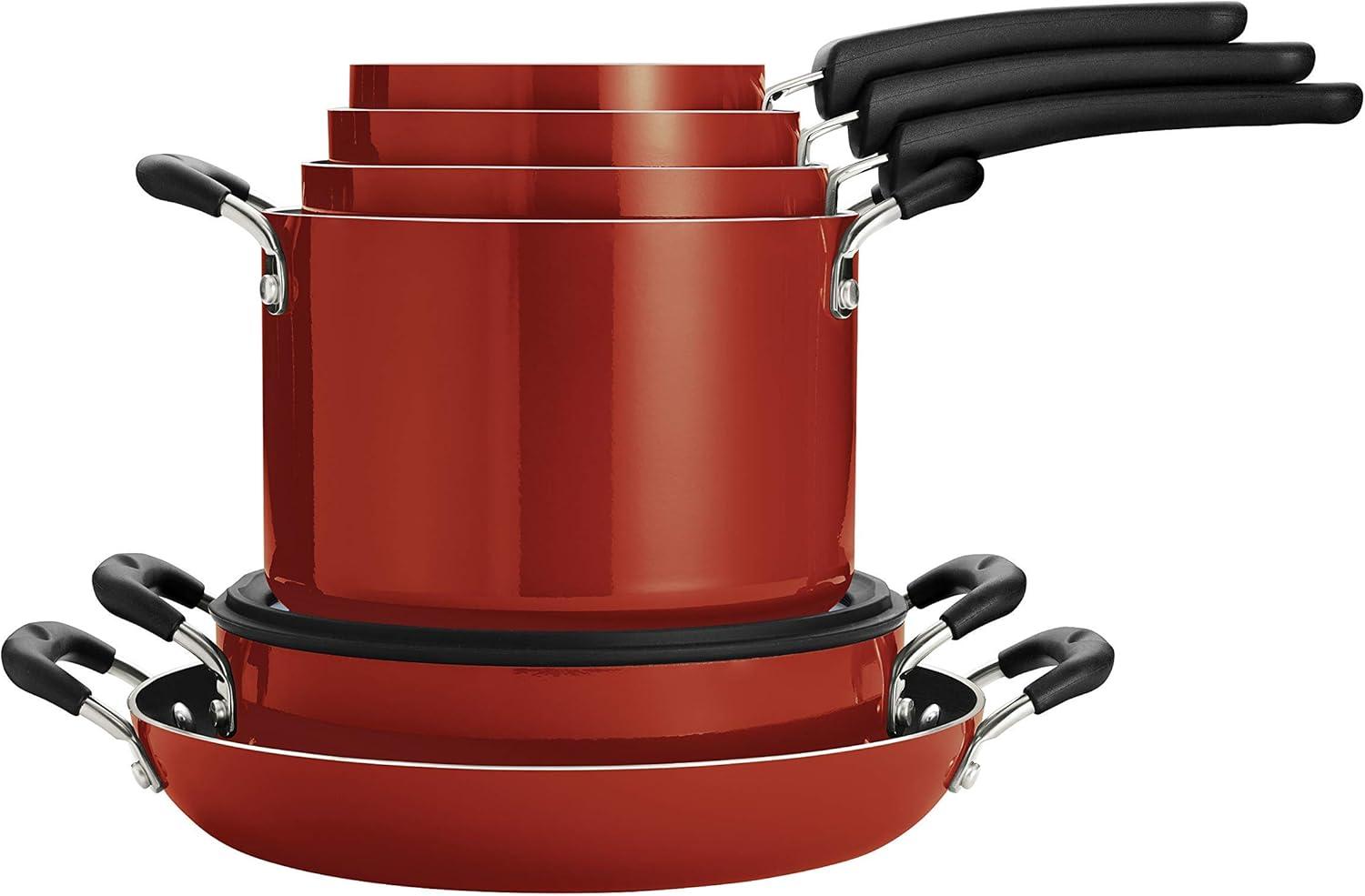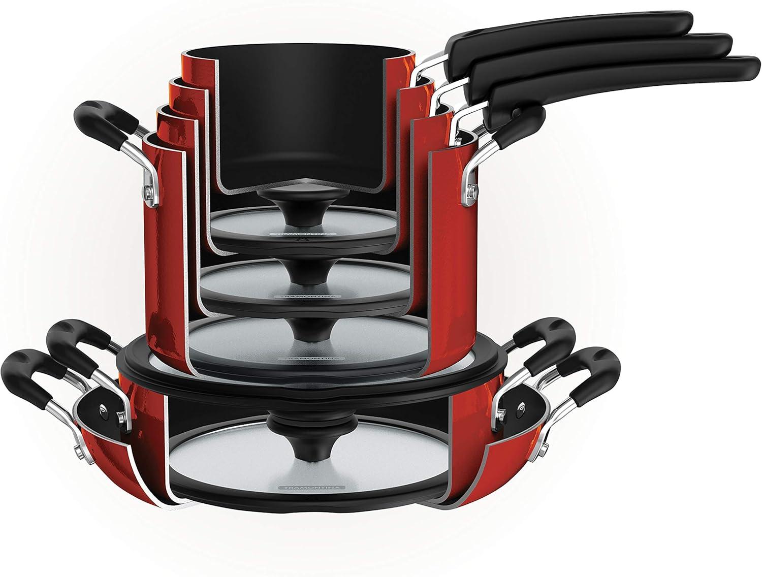 Tramontina Aluminum Non Stick 6-Piece Nesting Sauce Pan Set with Lids - Gray, Kitchen Nonstick Cookware Set, Dishwasher and Oven Safe(Red)