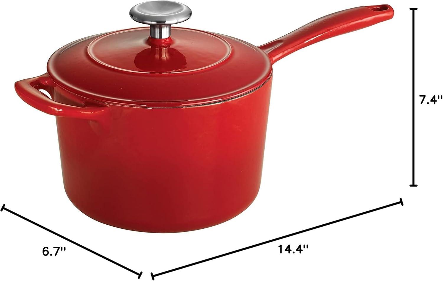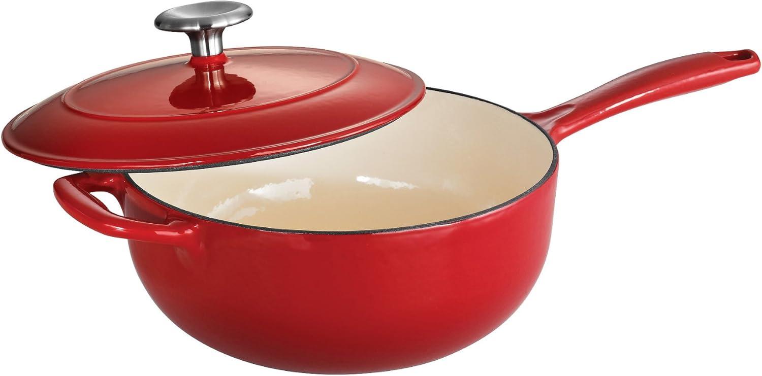 Get the Tramontina Bestow Enameled Cast Iron Sauce Pan with Lid, 2.5-quart, Latte with Gold Knob(Red) you want at a discounted price during our markdown sale event.
