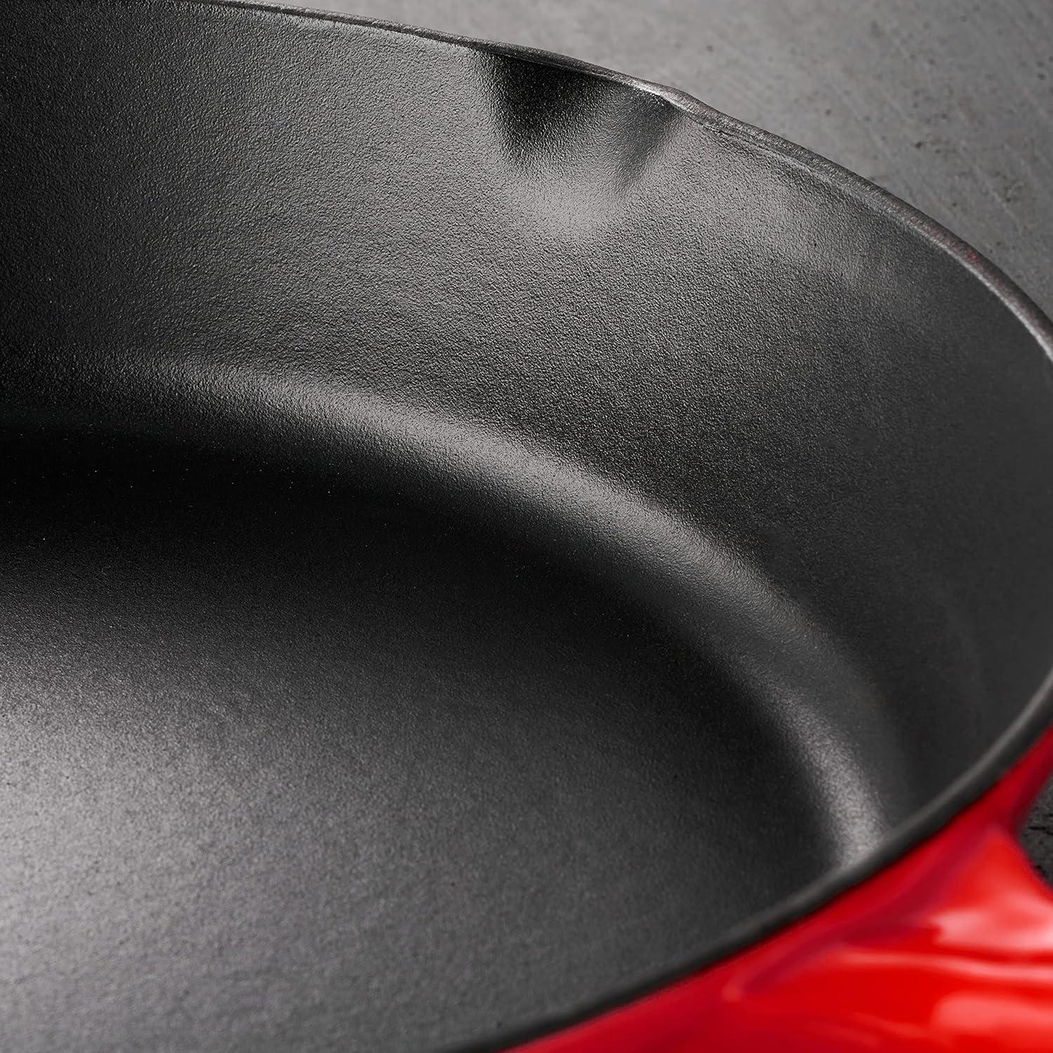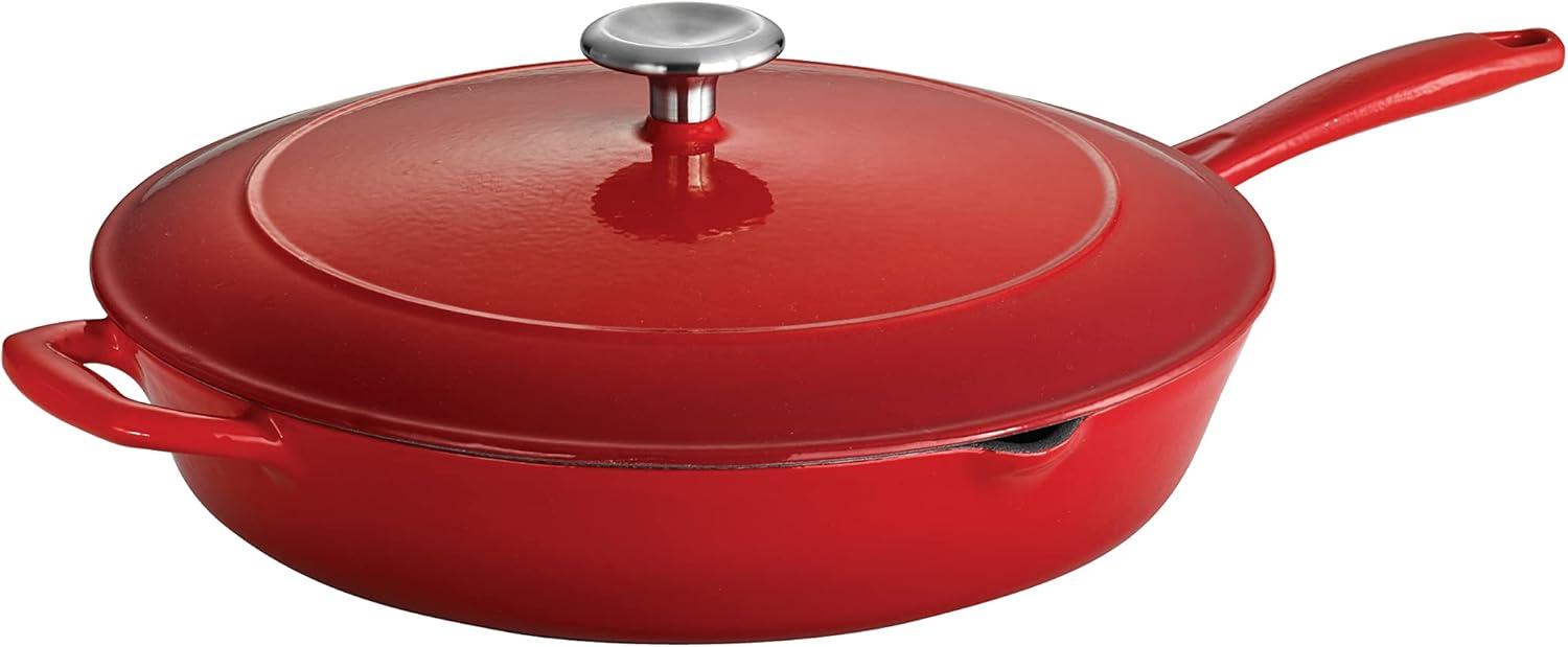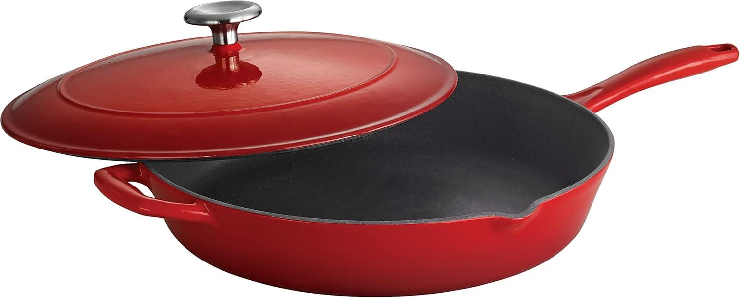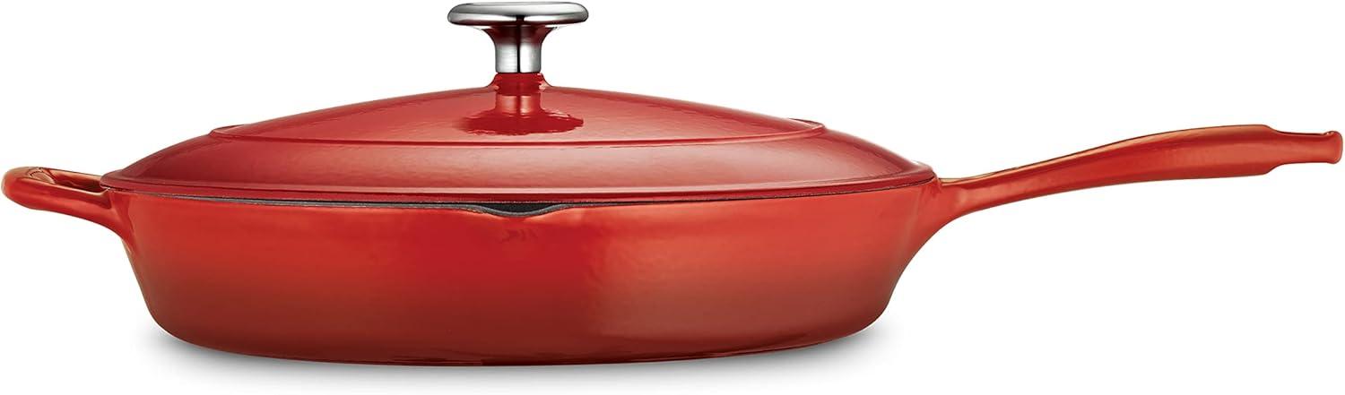 Tramontina Bestow Enameled Cast Iron Skillet with Lid, 10-inch Frying Pan, Red(Red)