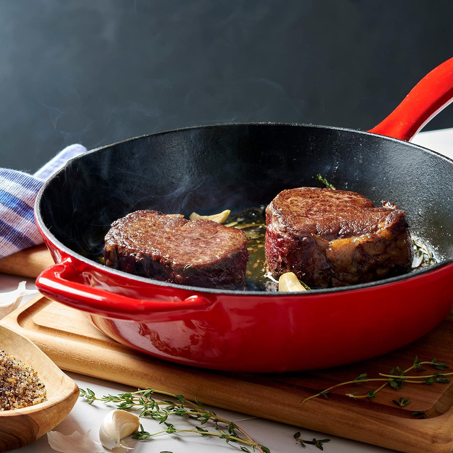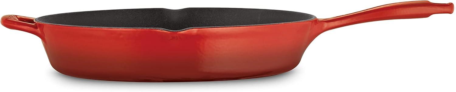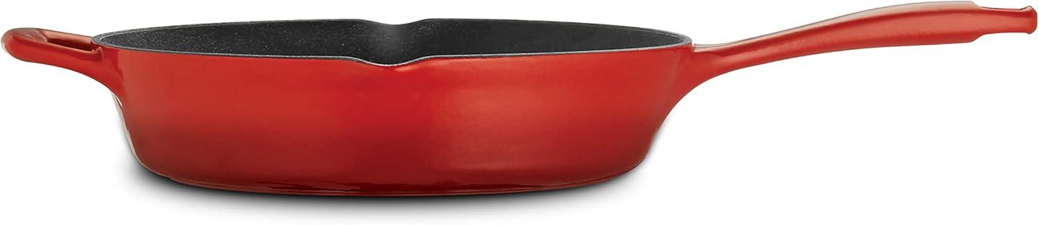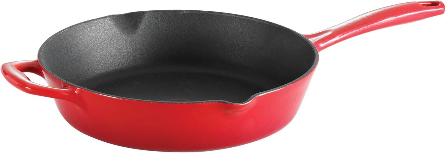 Tramontina Bestow Enameled Cast Iron Skillet with Lid, 10-inch Frying Pan, Red(Red)