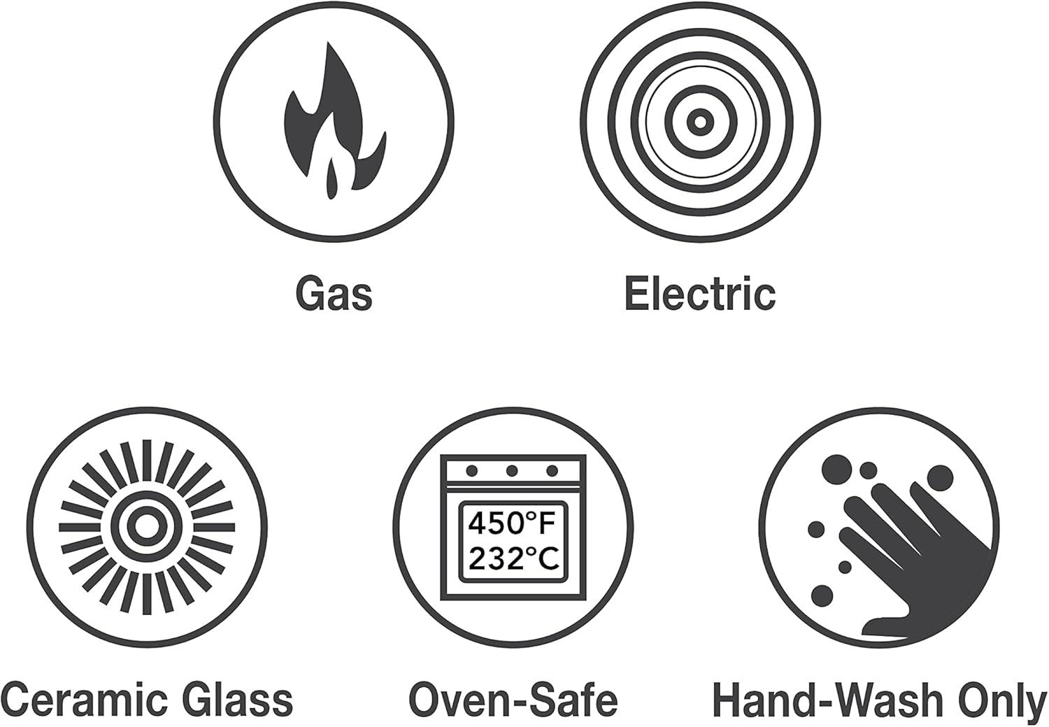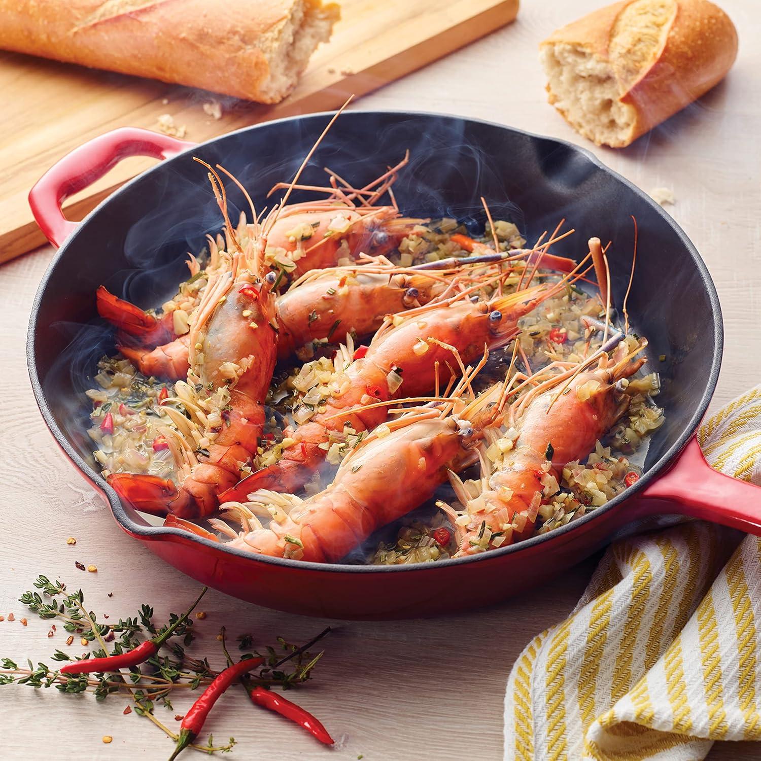 Versatile and User-Friendly: Oven-safe up to 450°F (232°C) and compatible with gas, electric, ceramic glass, and induction cooktops. Integral cast iron handles and a stainless steel lid knob ensure a secure grip and elegant functionality.