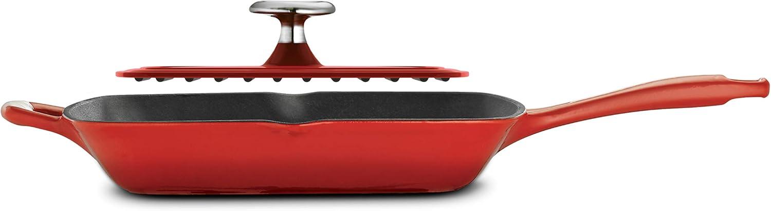 Tramontina Bestow Enameled Cast Iron Skillet with Lid, 10-inch Frying Pan, Red(Smoke)