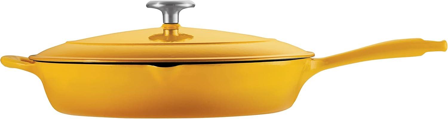 imageTramontina Bestow Enameled Cast Iron Skillet with Lid 10inch Frying Pan RedSunrise