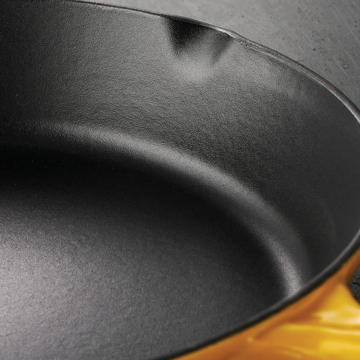 Moisture-Locking Lid: Equipped with self-basting condensation ridges on the cast iron lid to uniformly collect and direct vapors back onto food, creating moist and flavorful dishes.