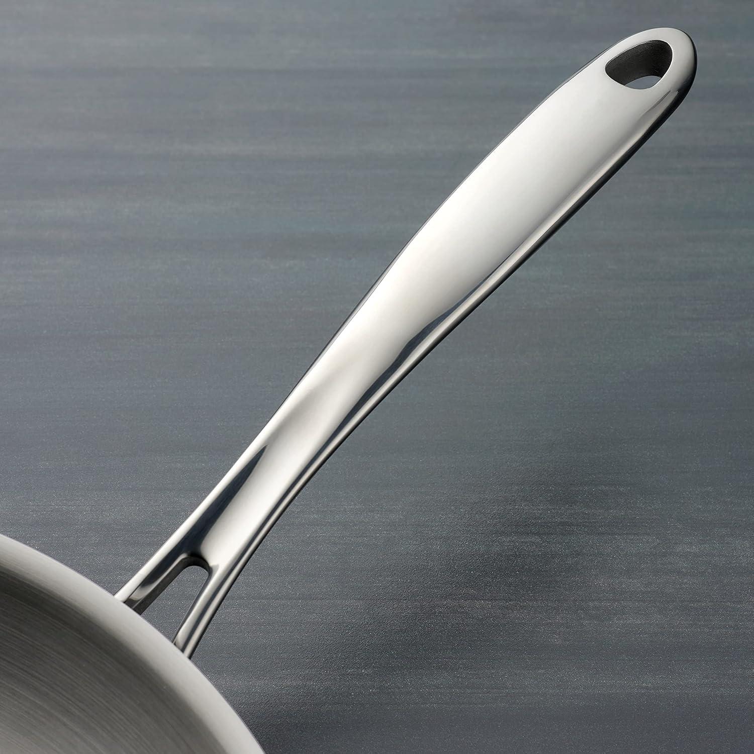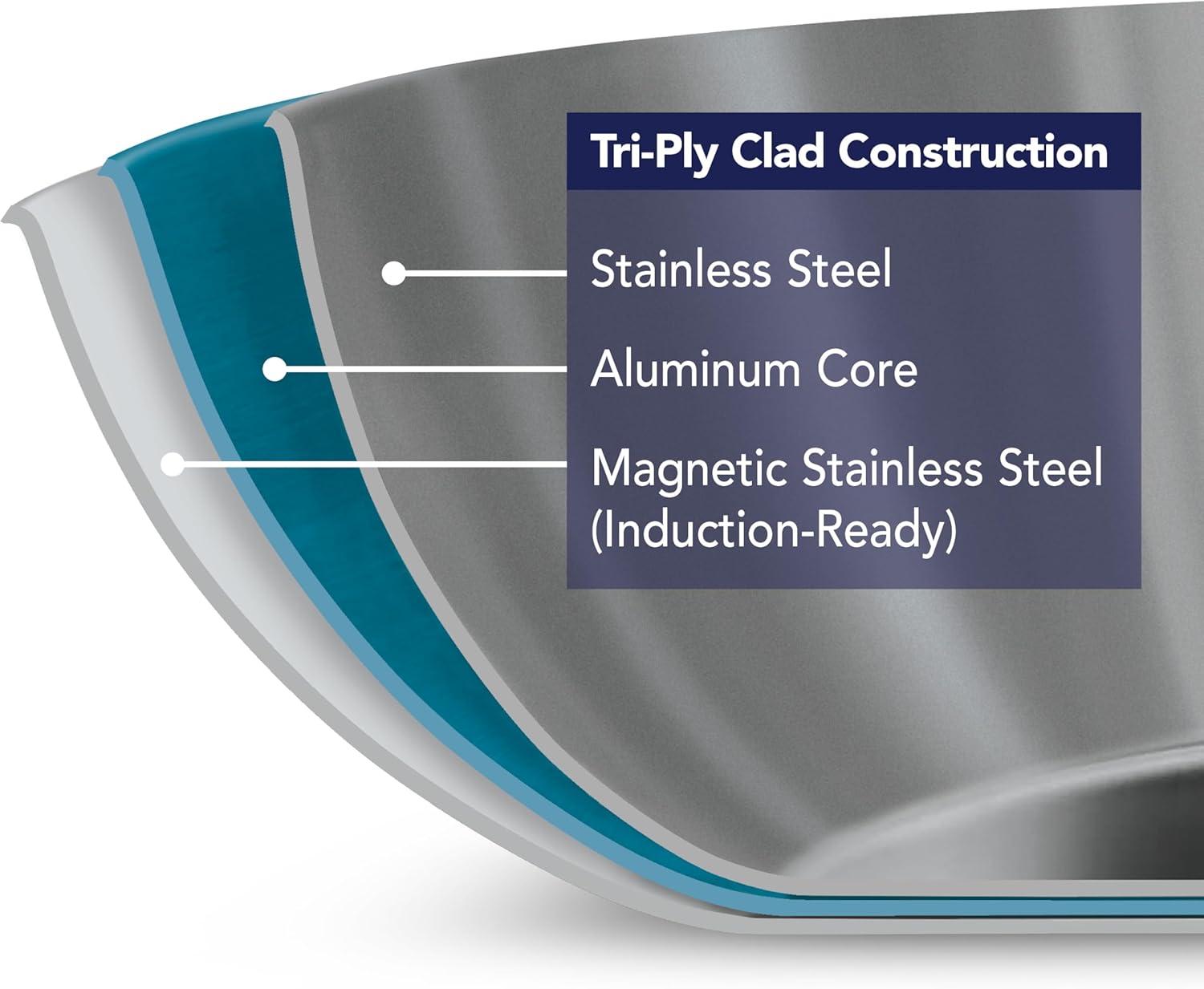 Tri-Ply Clad Construction: Features an aluminum core for even heat distribution and precise cooking control