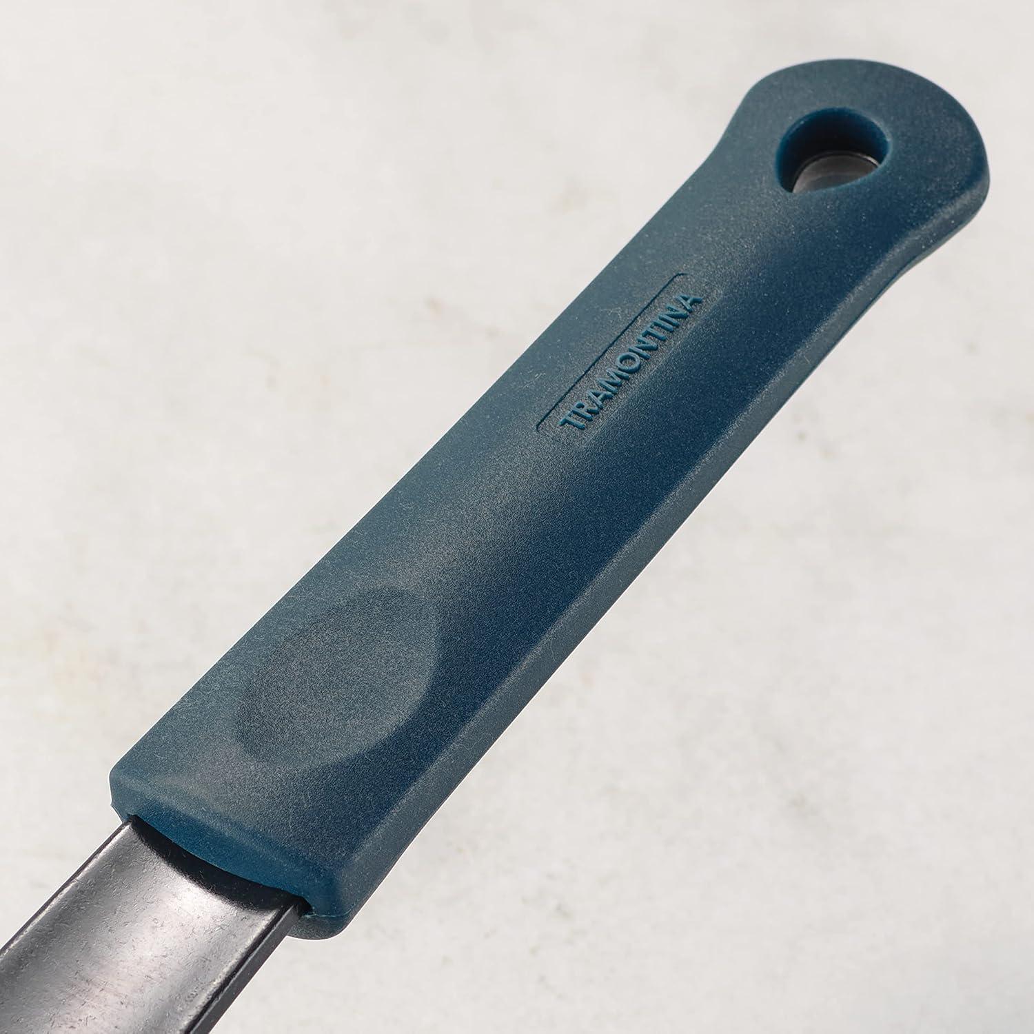 Tramontina’s 8.5 in Carbon Steel Fry Pan with Silicone Grip is durable and versatile. Reach for it to prepare evenly seared steaks, stir-fried vegetables, or scrambled eggs for one, or pop it in the oven to bake your skillet cookies and cobblers. The pan’s unique carbon steel construction makes it one of the most durable pans you’ll own. Carbon steel can handle high temperatures for perfect sears, and it can go from stovetop to oven with ease. The finishing is Nitro Carbonized with Natural Oil Finish. A riveted steel handle with removable silicone sleeve gives you easy control and protection. Made in Brazil.