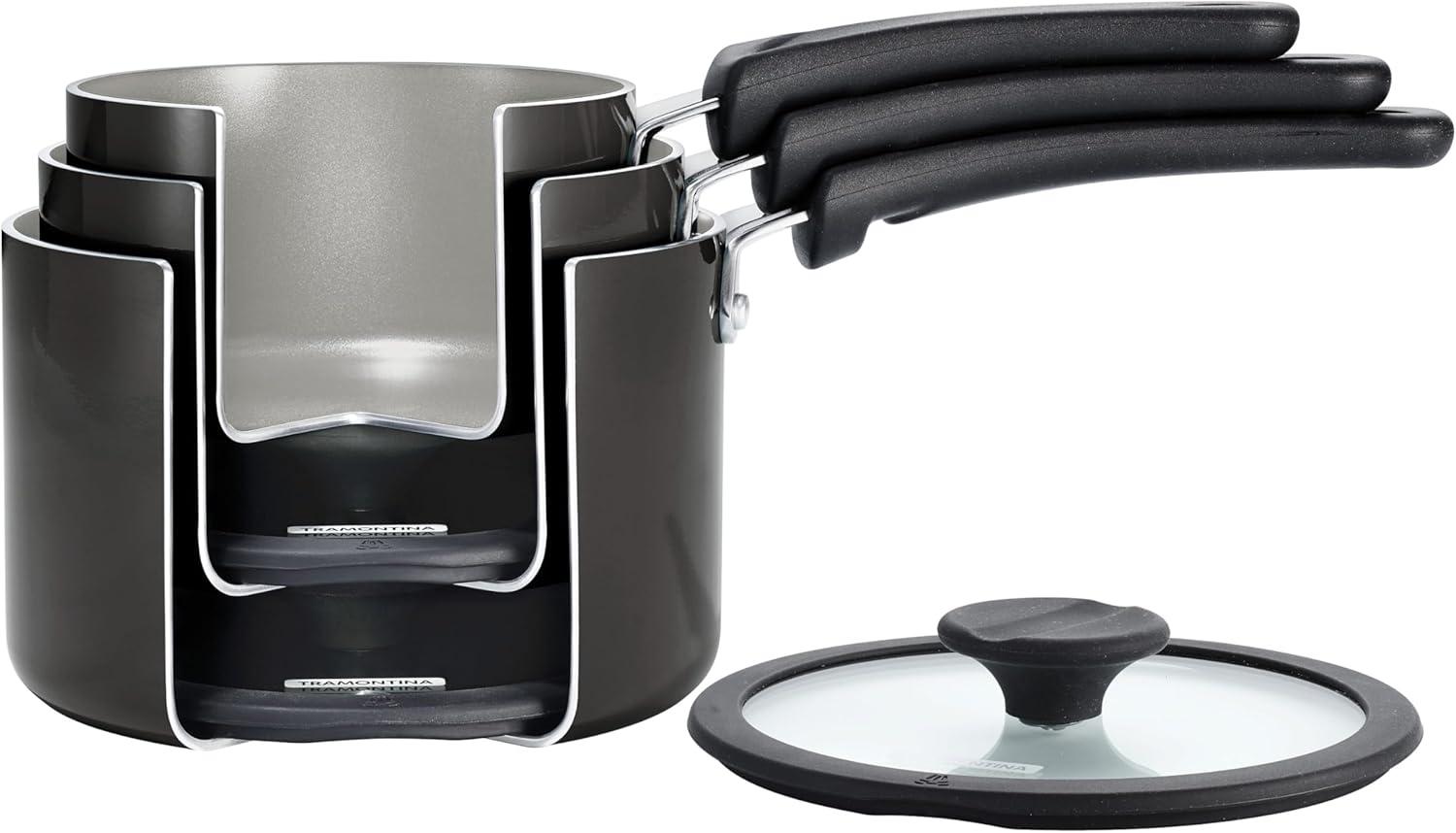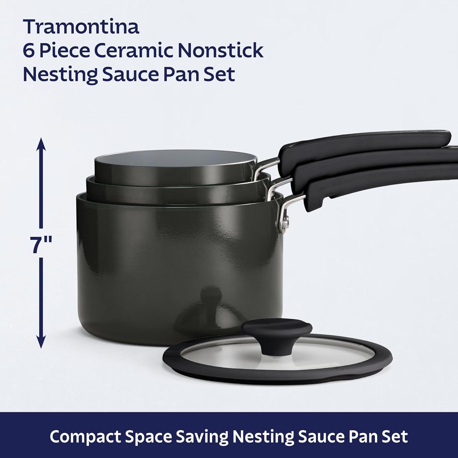 Tramontina Ceramic Non Stick 6-Piece Nesting Sauce Pan Set with Lids - Stackable Nonstick Cookware Set, Dishwasher and Oven Safe, White(Dark Gray)