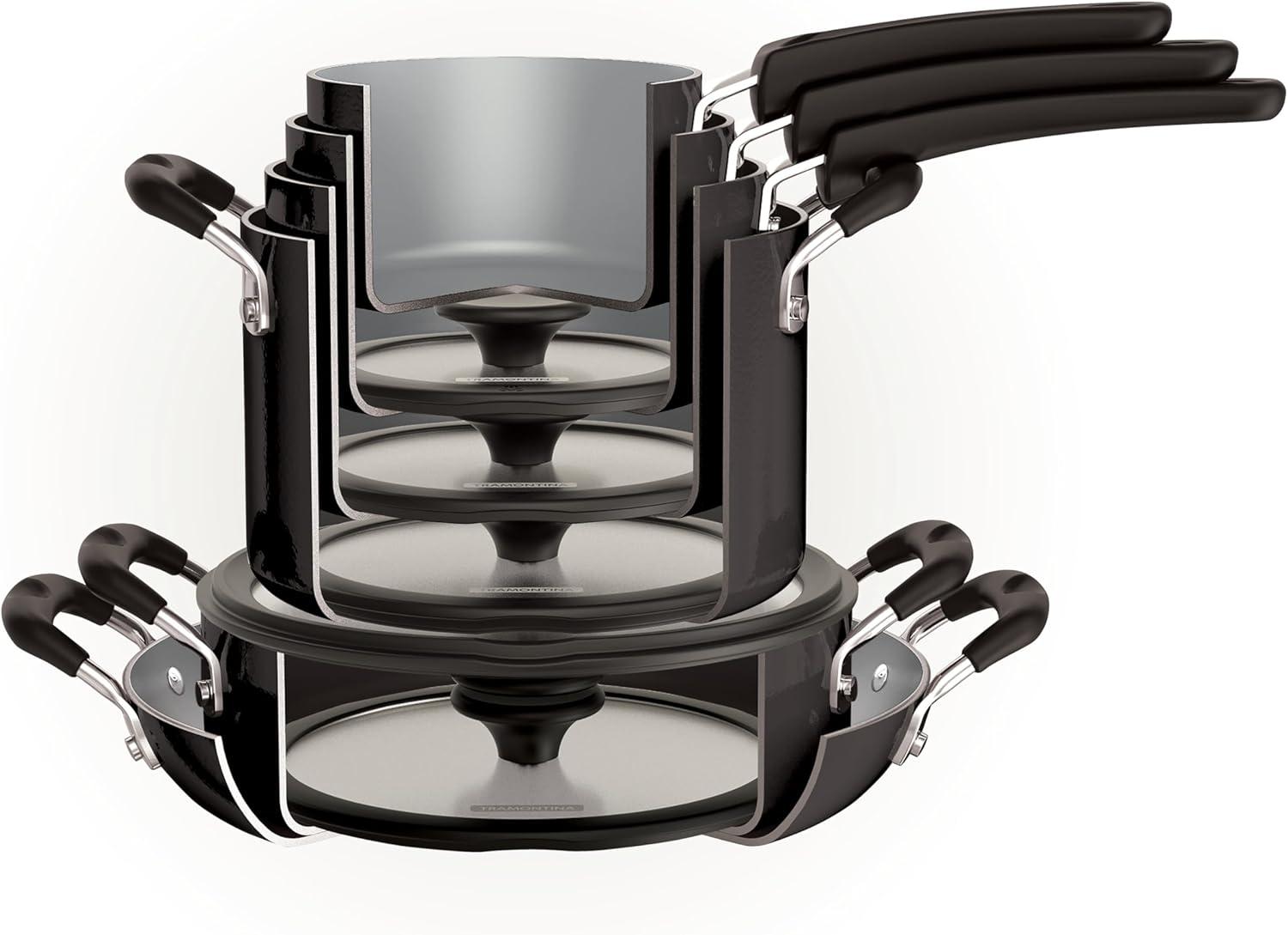Space Saving Nesting Design: Stackable cookware set saves up to 50% more cabinet space. Ideal for small kitchens, apartments, camping and RVs