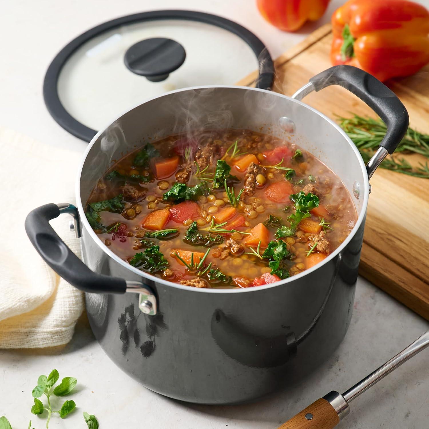 Convenient Lids & Handles: Tempered glass nesting lids and soft-grip silicone handles provide secure handling and moisture retention
