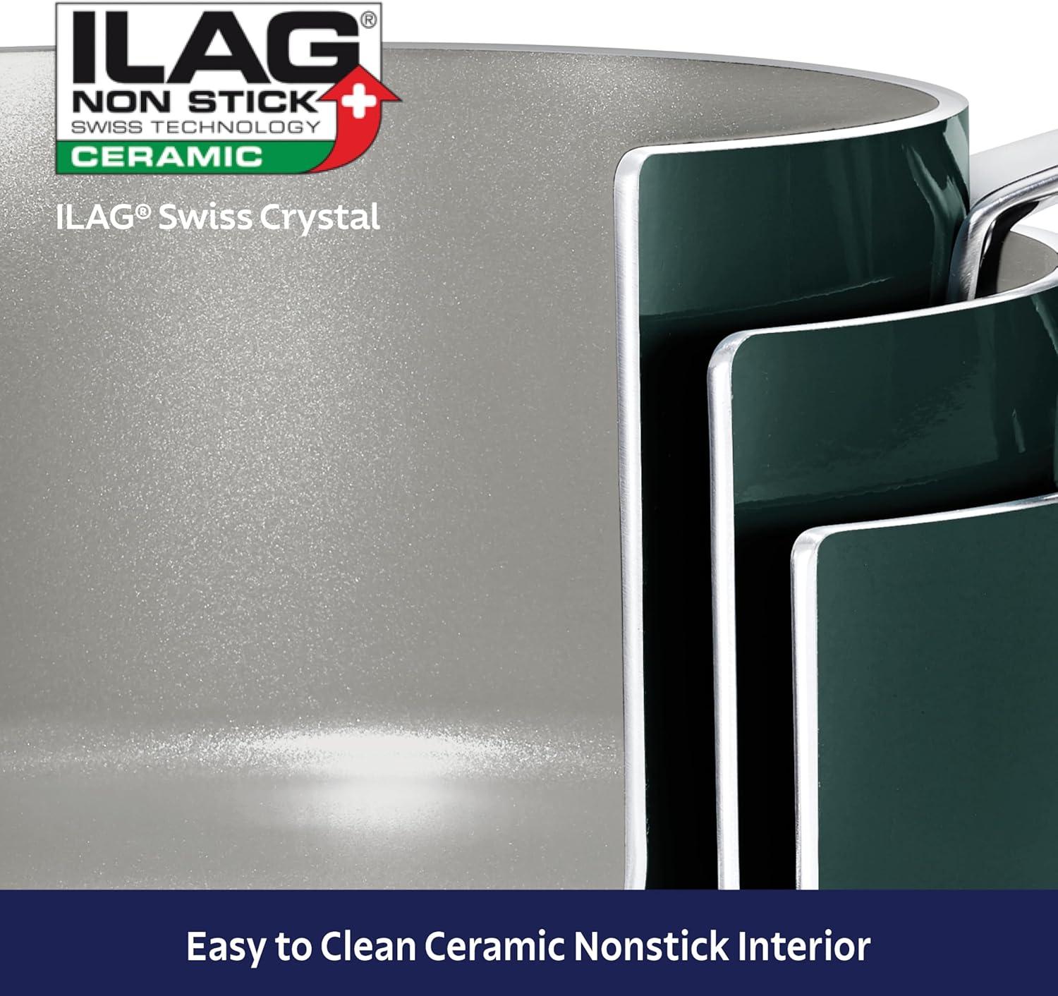 Premium Swiss-Engineered Ceramic Non Stick: Built with heavy-gauge aluminum for exceptional durability and even heat distribution, this cookware features a smooth interior coated with Xeradur by ILAG, a quality Swiss ceramic nonstick, offering easy food release, oil-free cooking and effortless cleaning