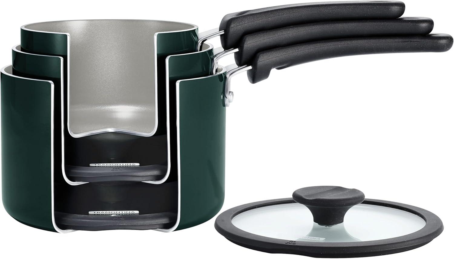 Tramontina Ceramic Non Stick 6-Piece Nesting Sauce Pan Set with Lids – Stackable Nonstick Cookware Set, Dishwasher and Oven Safe, White(White)