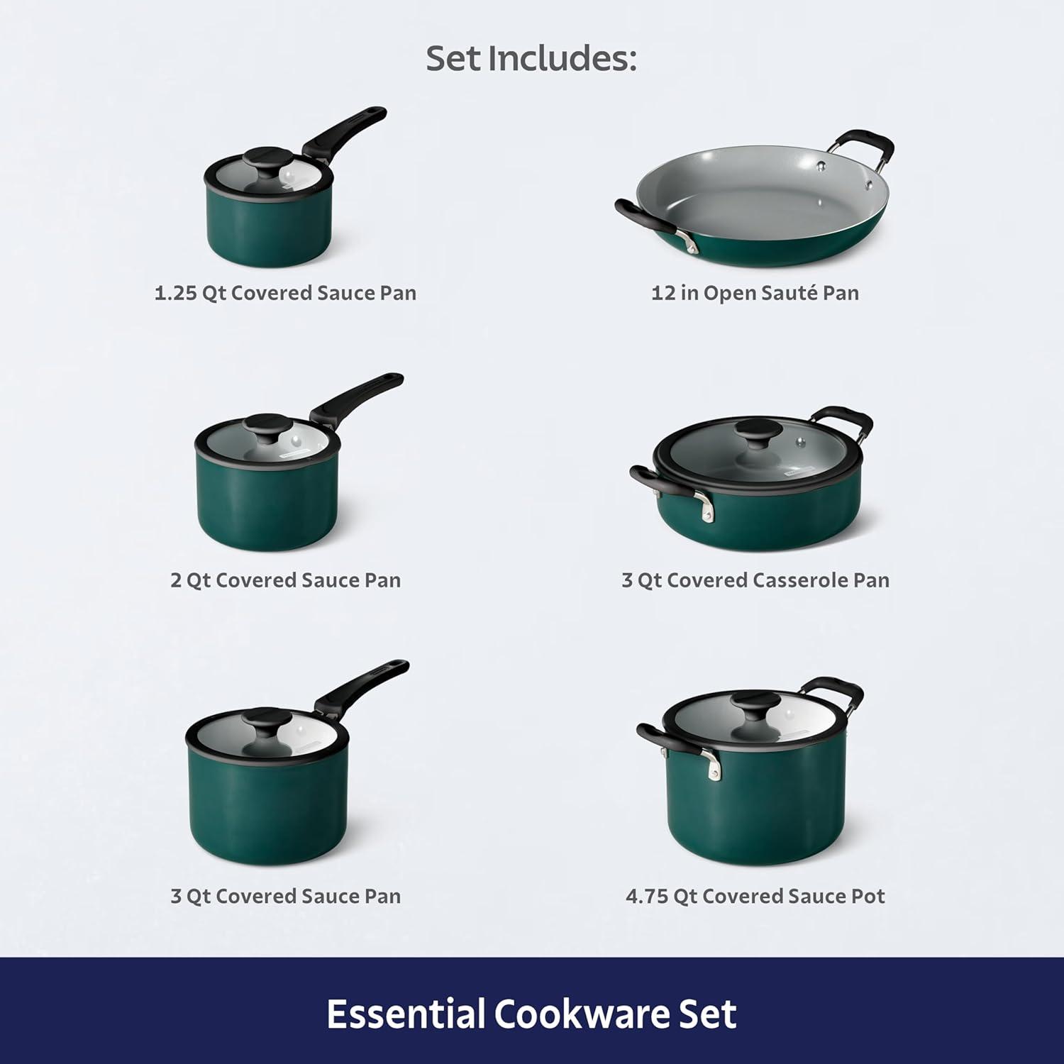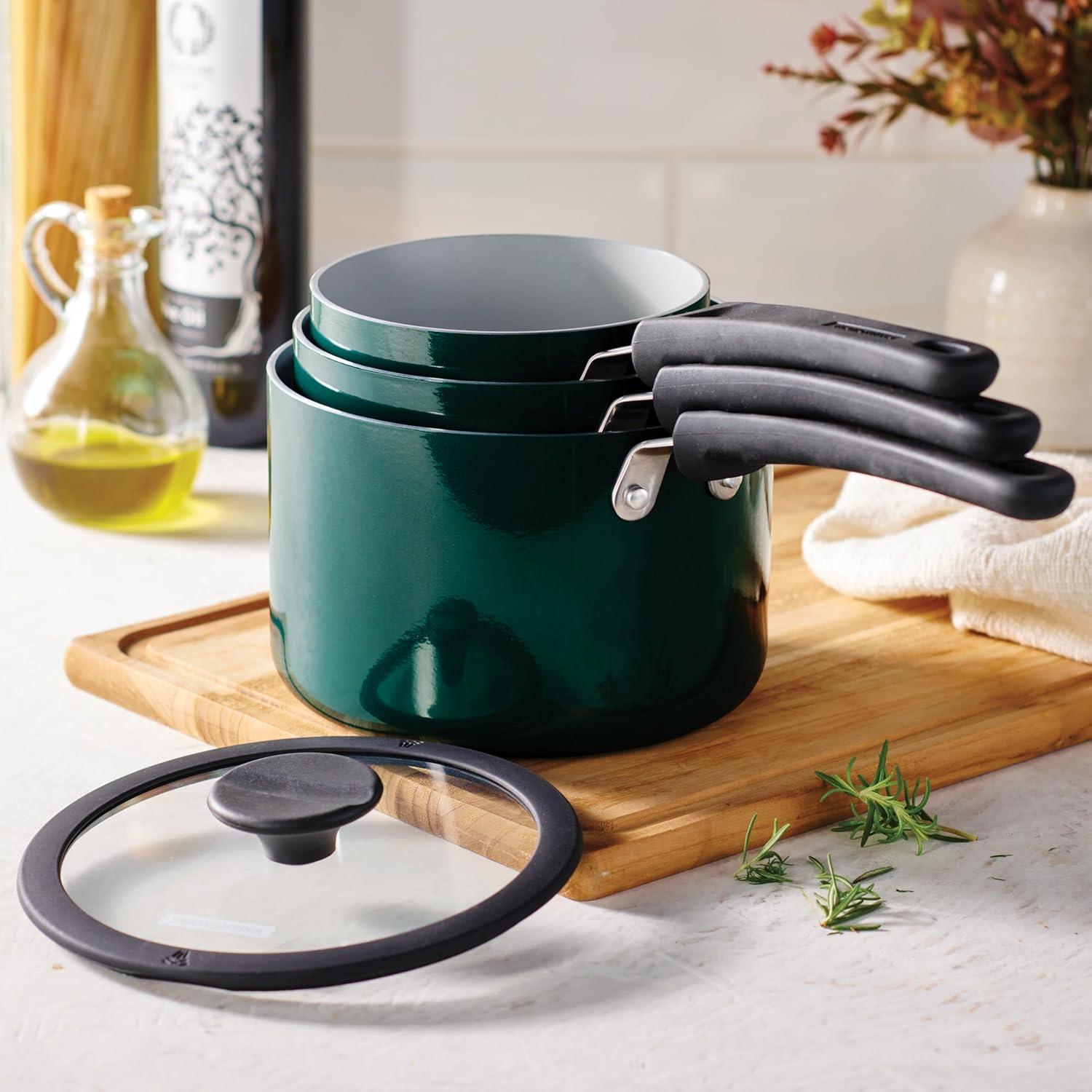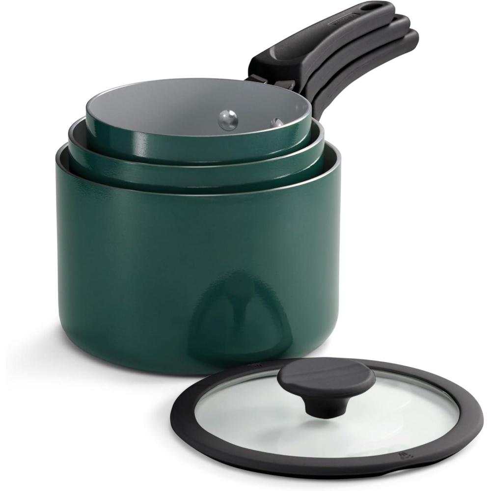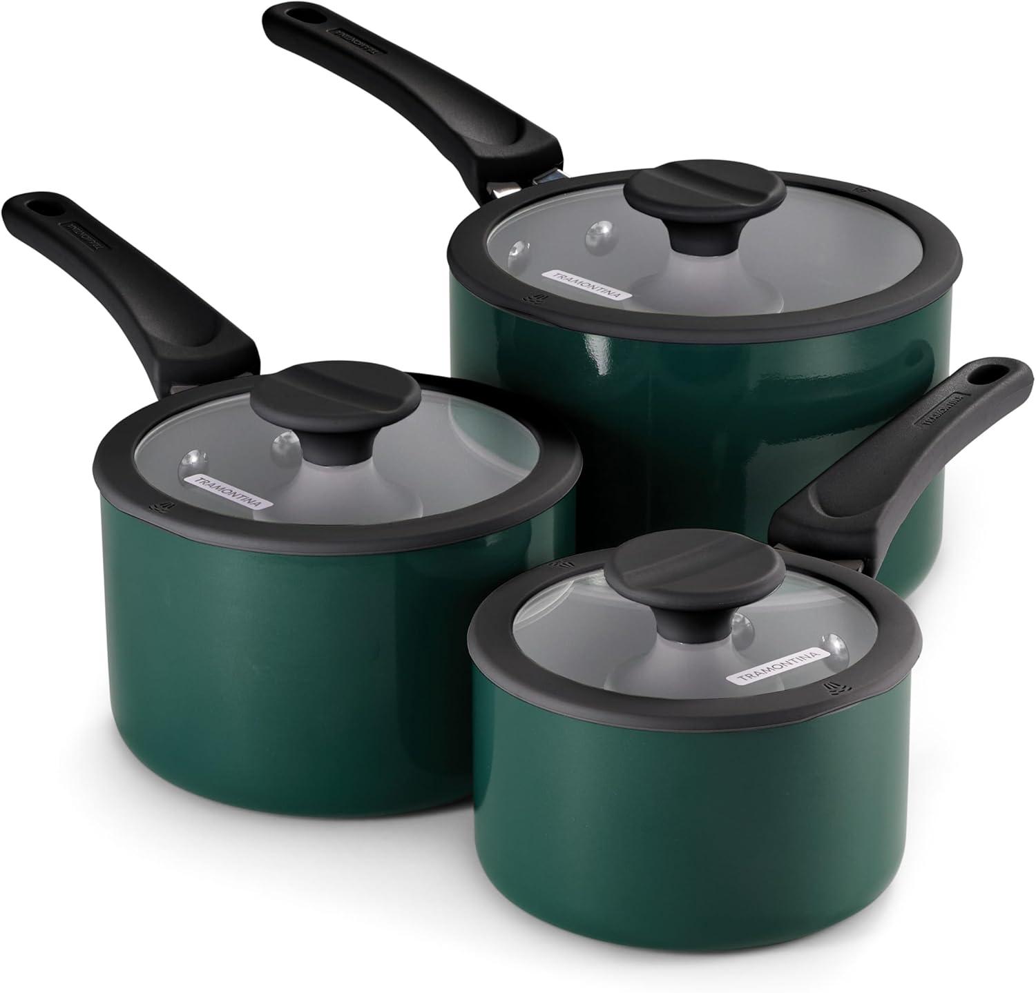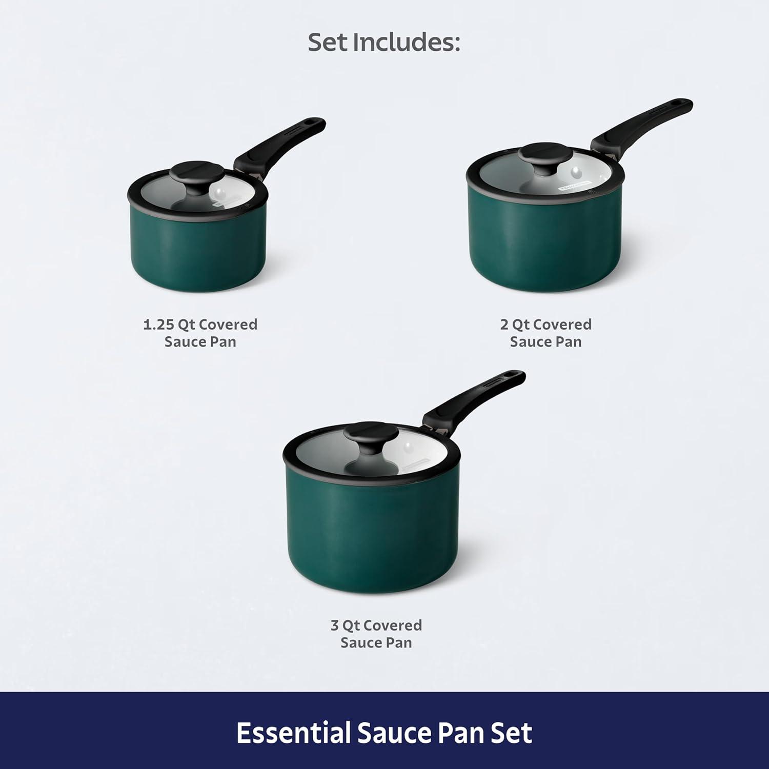 6-Piece Set Includes: 1.25-quart, 2-quart, and 3-quart covered saucepans for versatile cooking