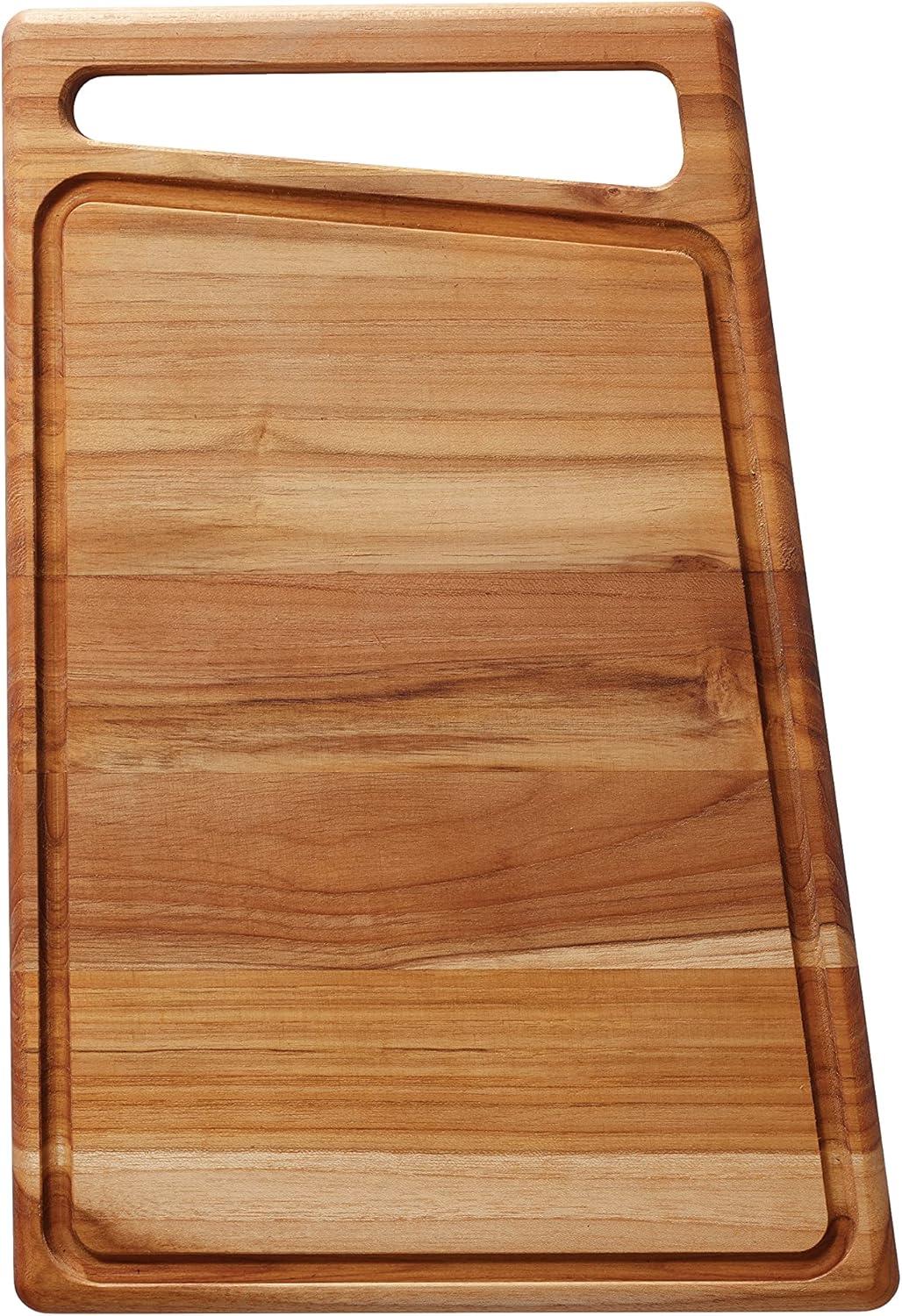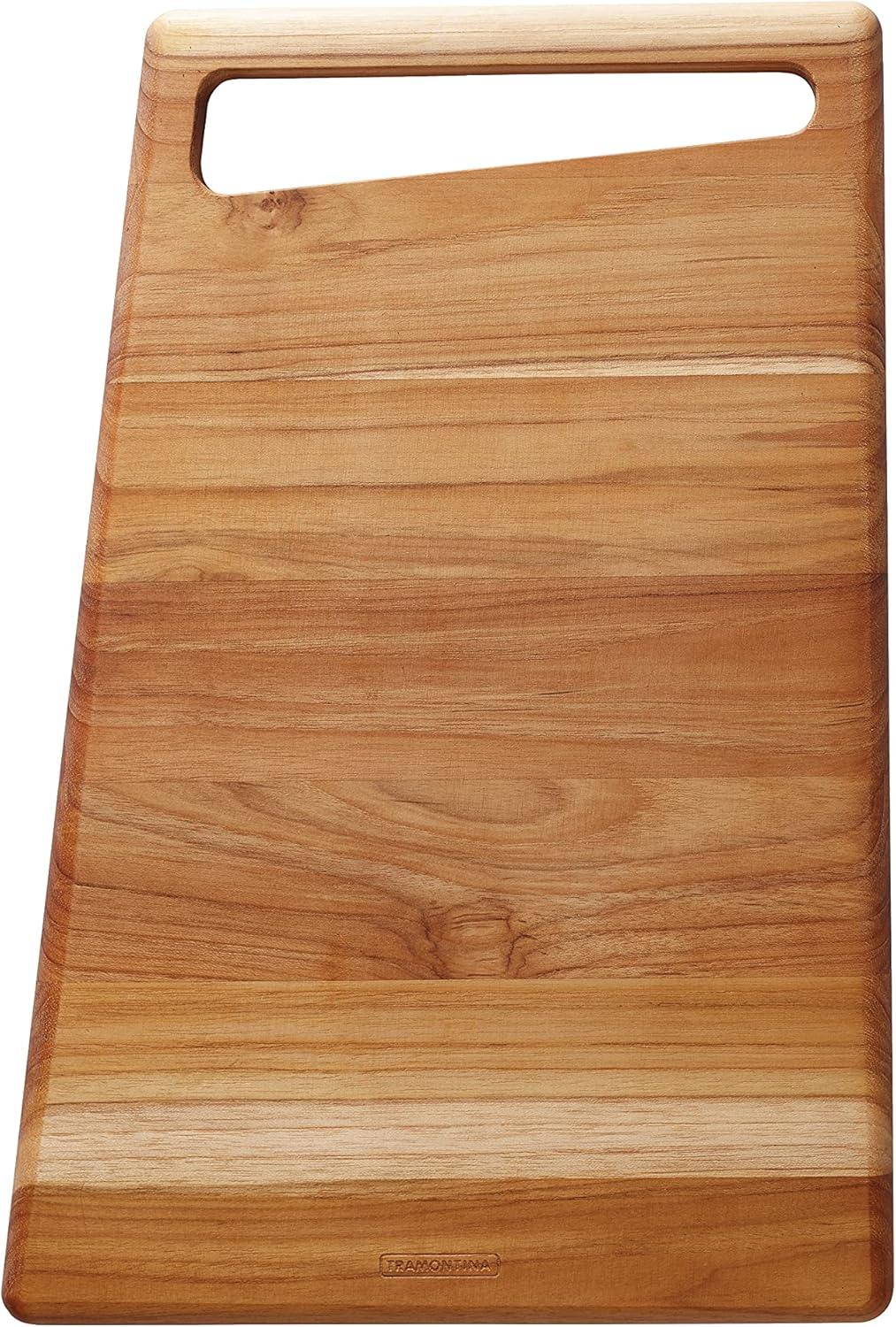 Cutting board? Serving board? How about both! Tramontina’s 15.75 in x 10.5 in Teak Wood Rectangle Cutting Board with Groove protects your countertops—and your knives—handles your slicing, dicing, and chopping tasks, and adds an elegant, rustic charm to your kitchen countertops. Crafted from authentic Brazilian Teak wood, the cutting board sits steady on any countertop. Teak wood is known for its density– making it a stable cutting surface that is less prone to rocking or slipping during use. Its carved out groove along the edge catches juice or liquids so they won't spill over the side. Add a new look to your kitchen by using your cutting board as a serving board! Made in Brazil.