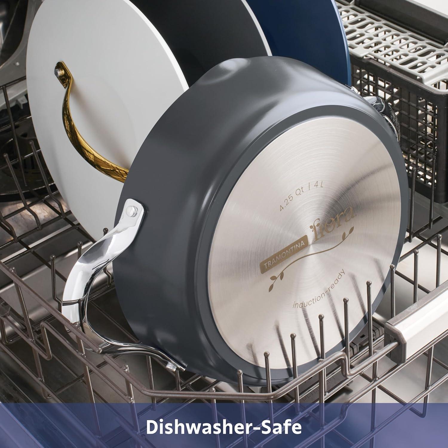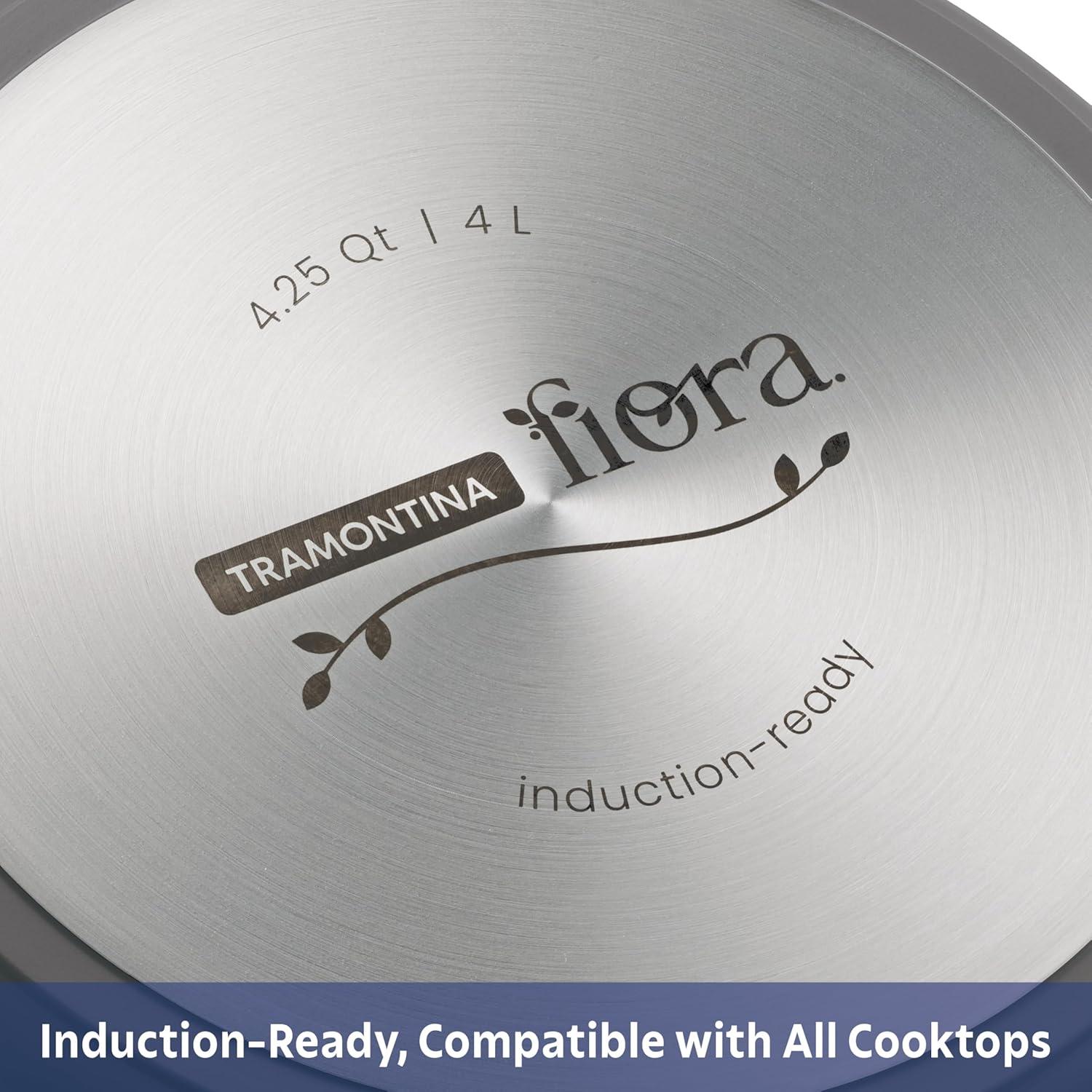 Tramontina Fiora 4.25-Quart Multipurpose Ceramic Non Stick Cooking Pan with Lid, Blue(Gray)