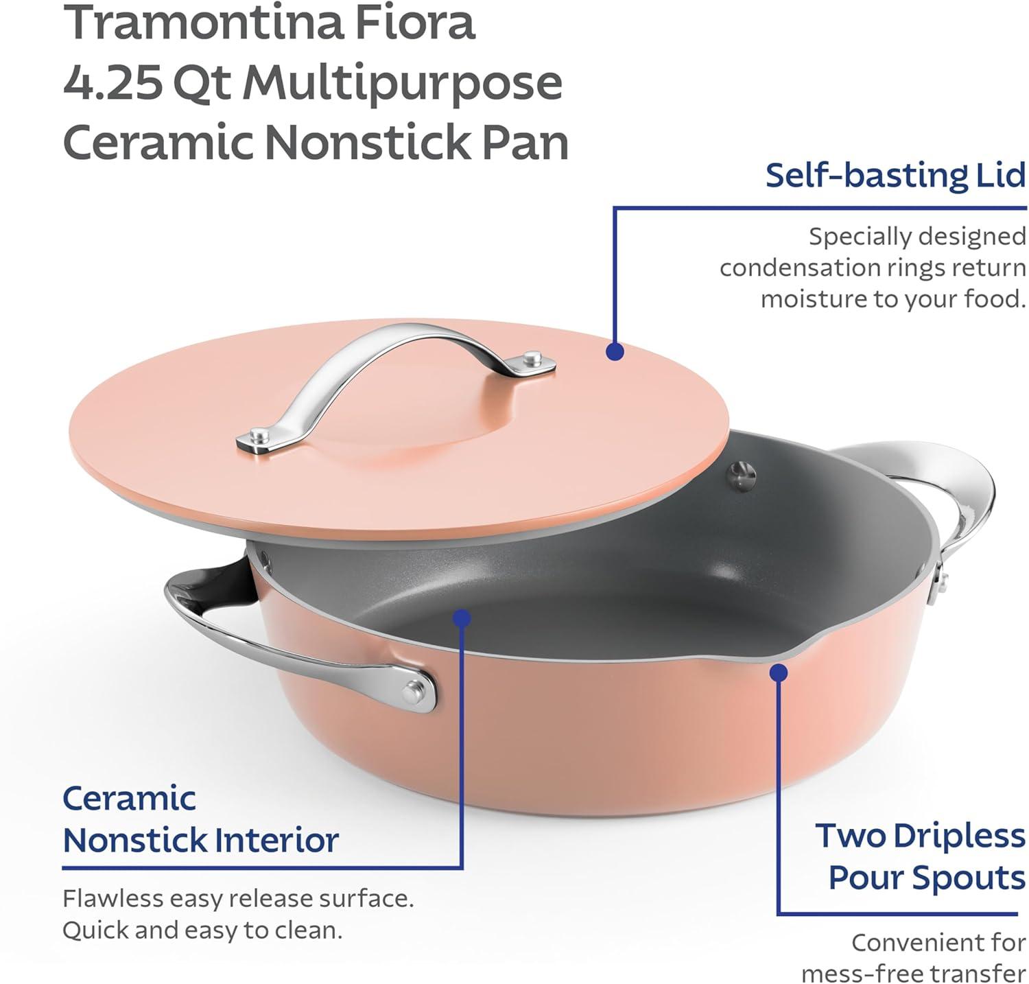 imageTramontina Fiora 425Quart Multipurpose Ceramic Non Stick Cooking Pan with Lid Frost BlueSpanish Villa