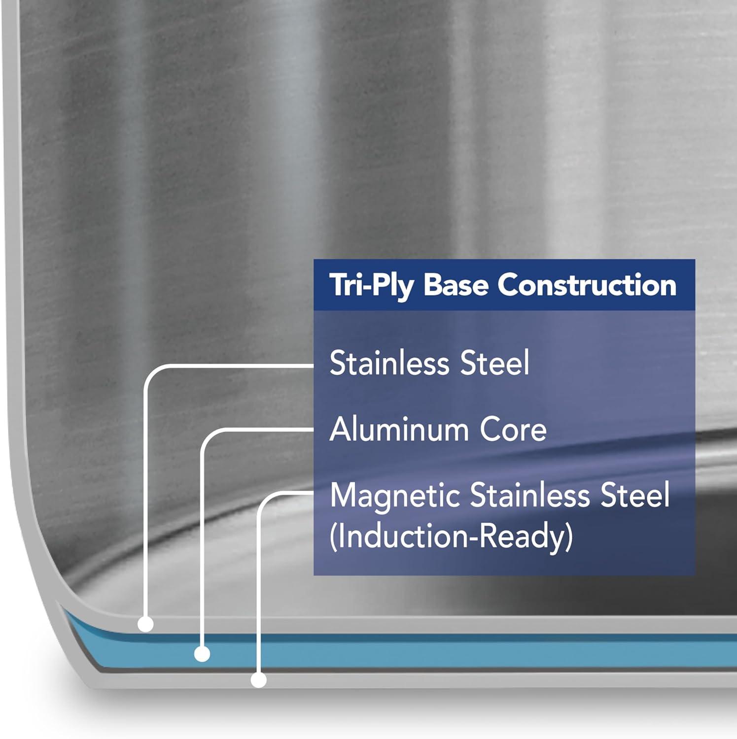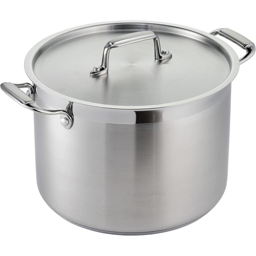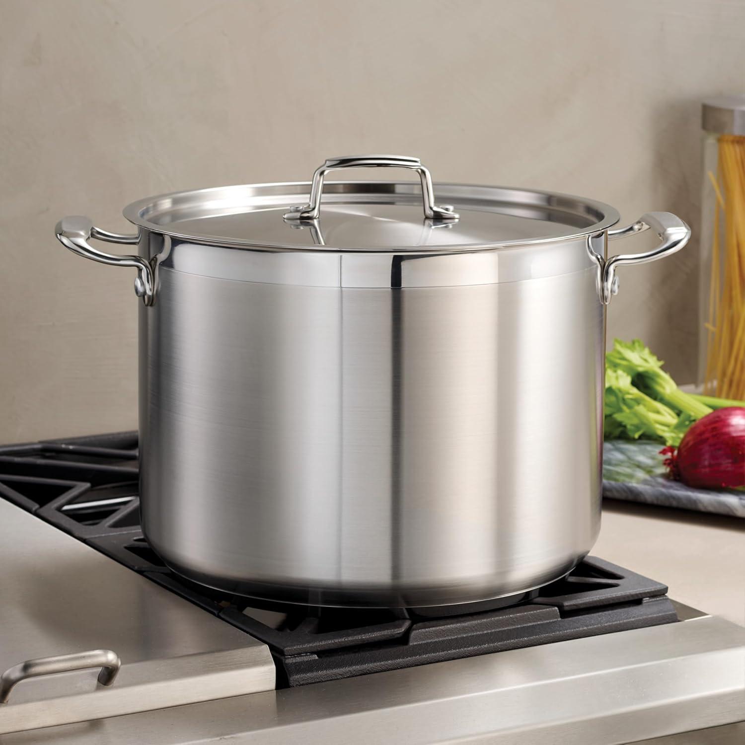 Tramontina's Gourmet 8 Quart Stainless Steel Stock Pot delivers exceptional performance, combining the impeccable beauty, durability, and quality of premium stainless steel. Its base is impact-bonded with three layers: an inner layer of 18/10 stainless steel, an aluminum core for superior conductivity and even heat distribution, and a magnetic stainless steel outer layer, making it perfectly suited for induction-ready cooktops. This versatile 8 Qt stock pot offers great all-in-one functionality for your cooking needs, ideal for preparing generous batches of stews, hearty soups, vegetables, or seafood. Crafted for a lifetime of use, this stock pot features an 18/10 stainless steel lid and riveted, precision cast stainless steel handles for solid reliability and a comfortable grip. As part of Tramontina's Gourmet collection, it represents a series of premium products engineered with the finest design, materials, and workmanship, designed to outperform similar products on the market and deliver exceptional quality and value to both culinary professionals and enthusiasts. This elegant addition to your kitchen is compatible with gas, electric, ceramic glass, and induction cooktops. It's also dishwasher and oven-safe (up to 500°F / 260°C).