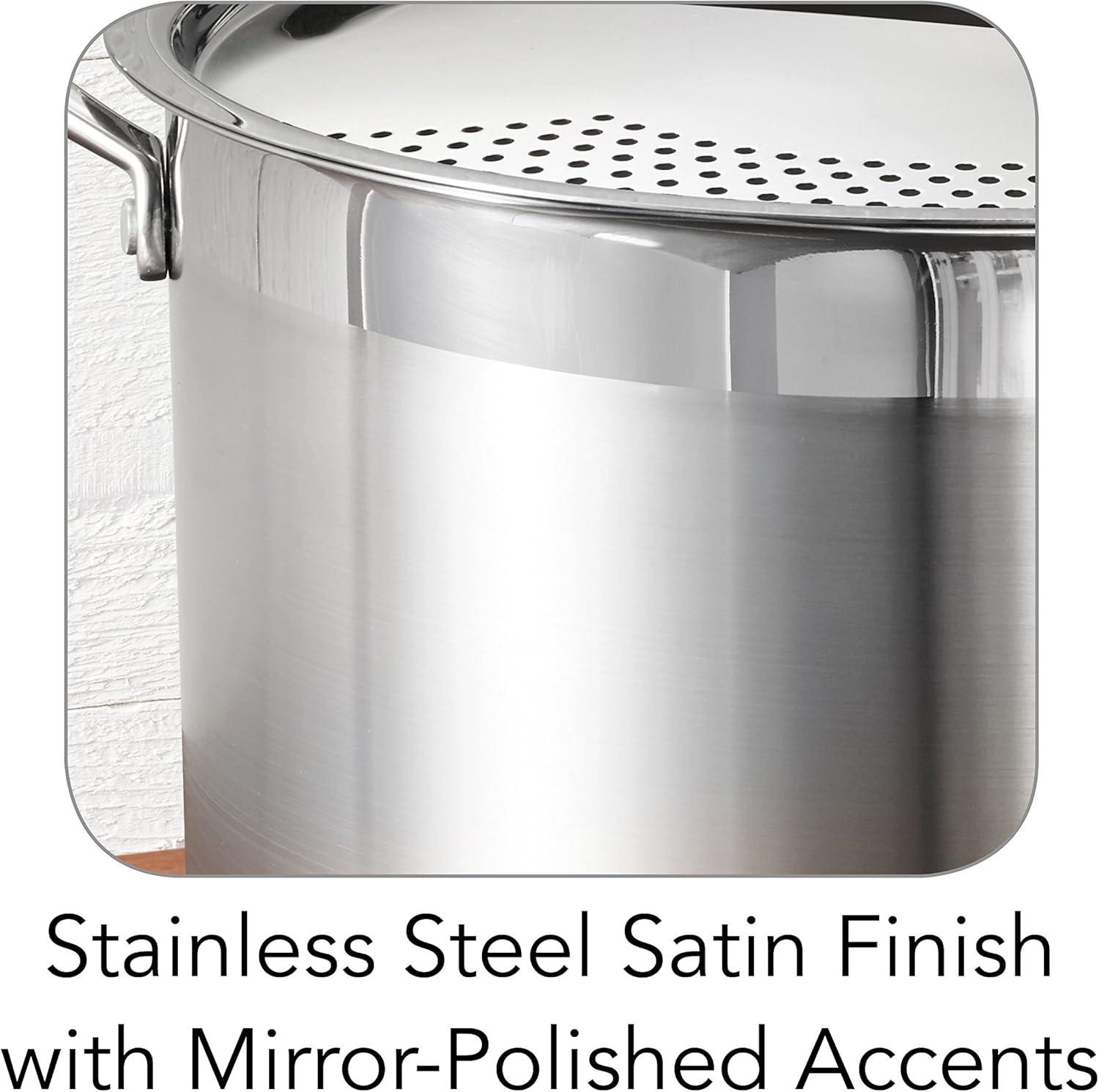 Prepare pasta like a professional cook with Tramontina's 8 Qt Lock-n-Drain Stainless Steel Pasta Cooker.The pot's heavy-duty stainless steel construction features an impact-bonded three-layer base, made of 18/8 stainless steel, a thick aluminum core and magnetic stainless steel for even heating and the reliable performance you've come to trust from Tramontina. Crafted with a fine satin finished interior and exterior, the stainless steel pot will not impart flavor onto your food. A heat- and shatter-resistant tempered glass lid lets you monitor progress, and riveted, cast stainless steel handles offer a firm grip for easier maneuverability. The stainless steel Lock & Drain Insert locks into place, so you can easily and safely drain pastas, vegetables, and seafood from the pot without a colander. The pot may also be used without the strainer. Dishwasher-safe and compatible with all cooktops-including induction. If pasta is the family favorite, or the house specialty, add this pot to your kitchen!
