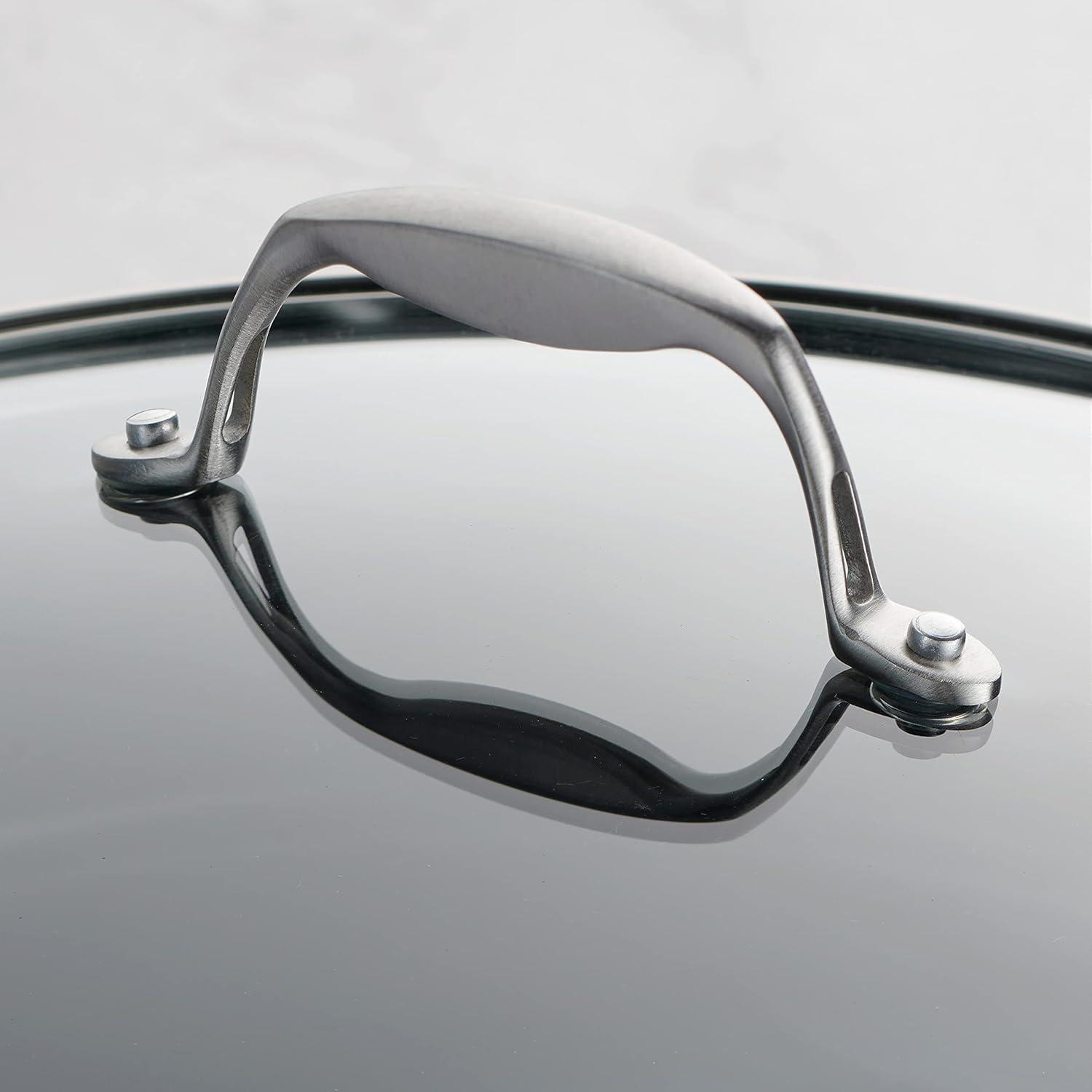Secure & Comfortable Handling: Features precision-cast stainless steel handles with a satin finish for a secure grip, plus heat- and shatter-resistant tempered glass lids with a wide stainless steel rim.