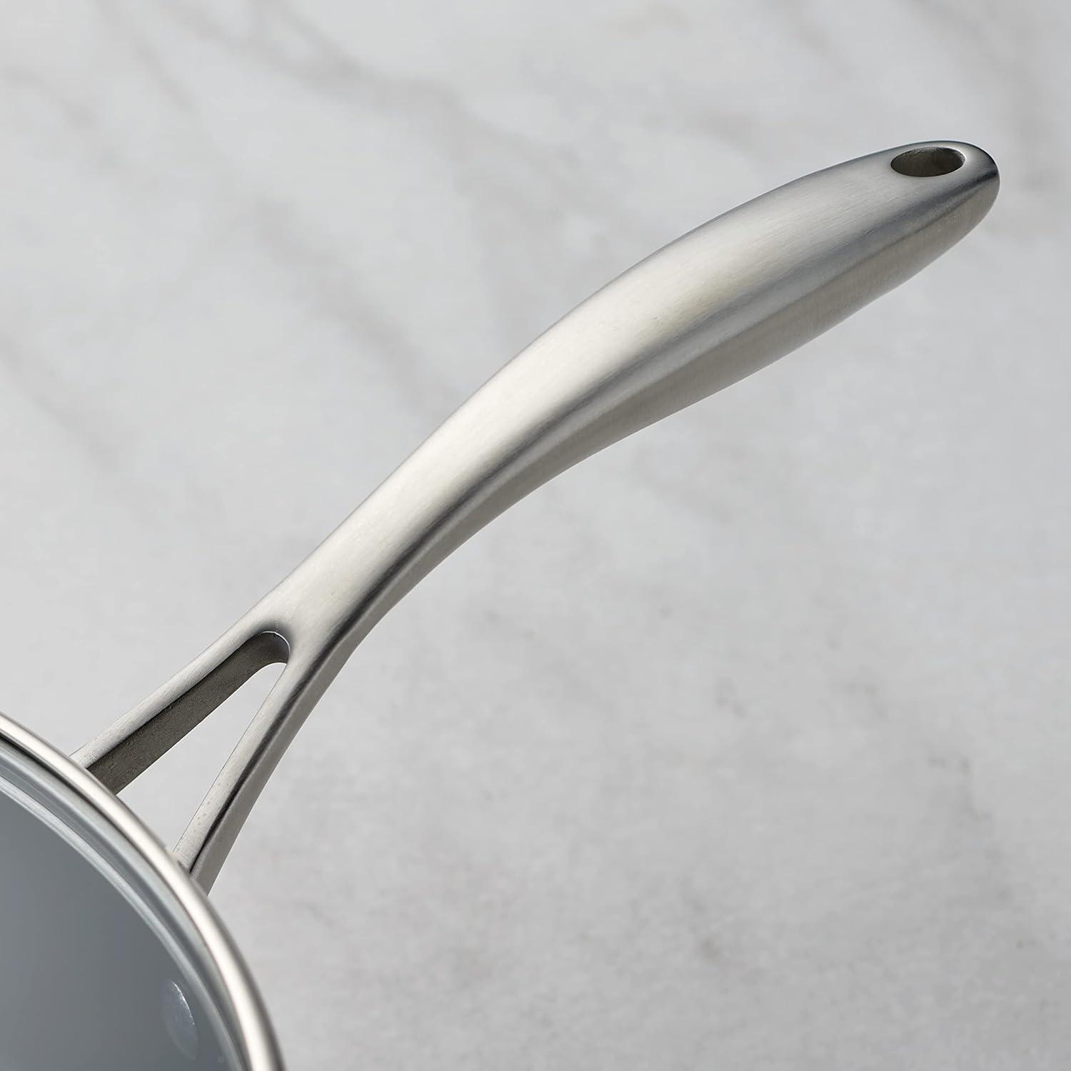 Secure & Comfortable Handling: Features precision-cast stainless steel handles with a satin finish for a secure grip, plus heat- and shatter-resistant tempered glass lids with a wide stainless steel rim.