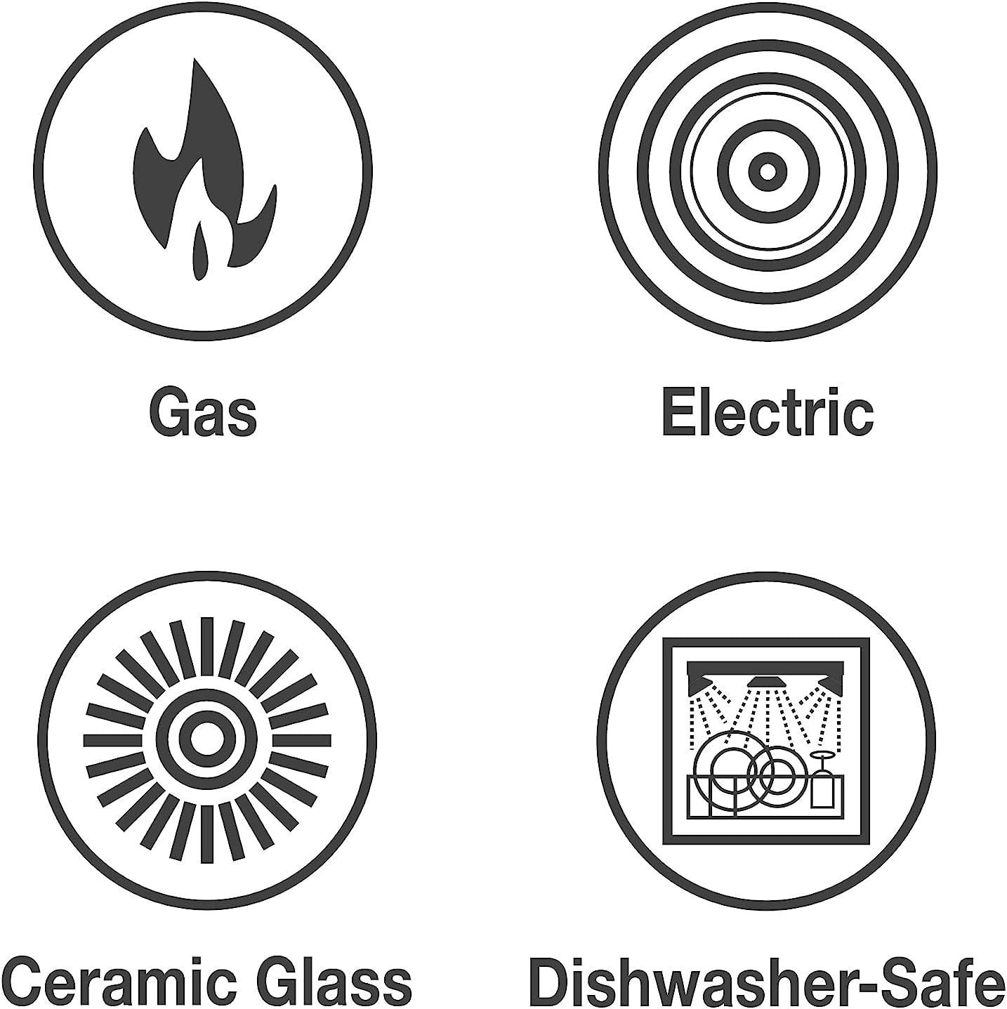 COMPATIBLE WITH MULTIPLE COOKTOPS: Designed to work efficiently on gas, electric, and ceramic glass cooktops, offering versatility for different kitchen setups.