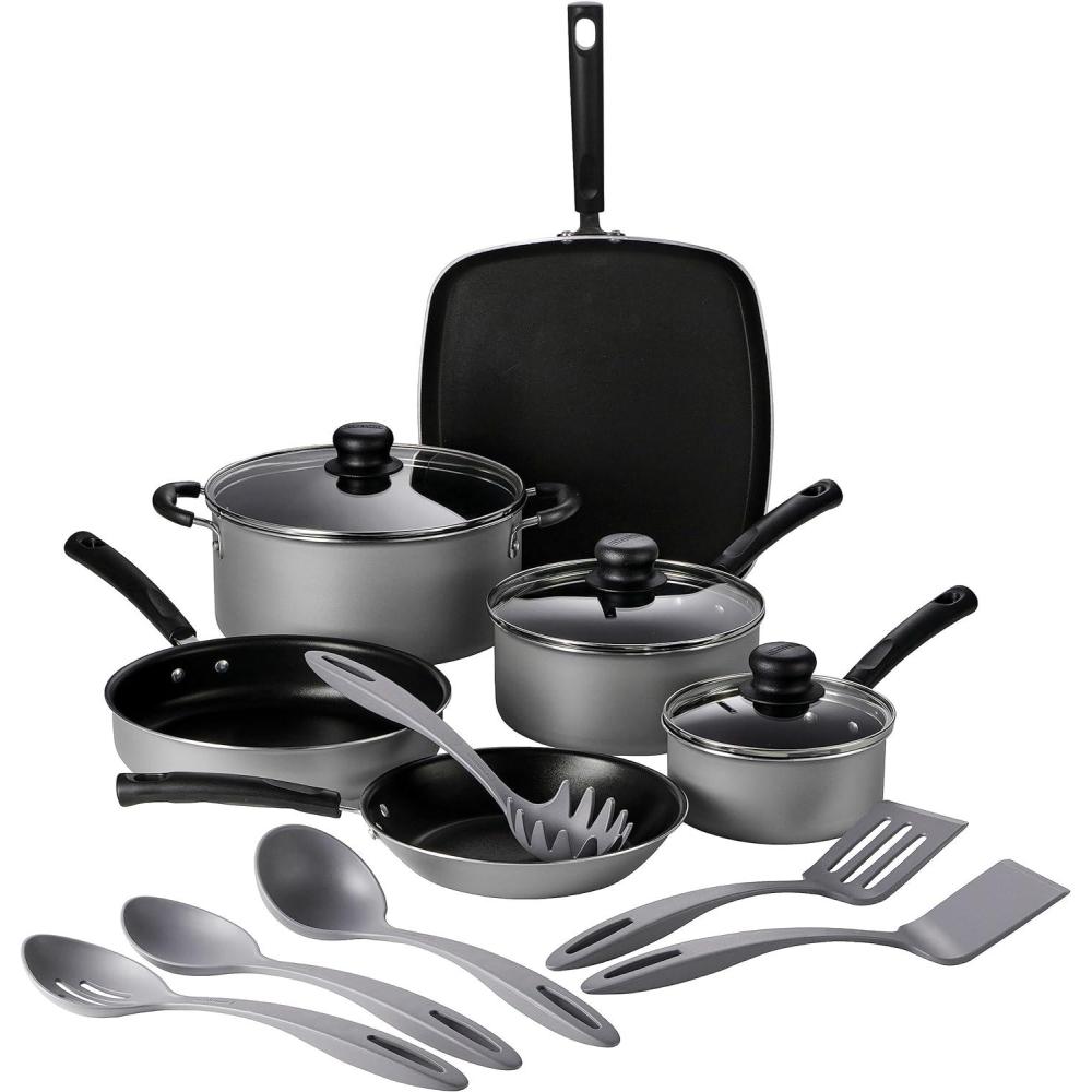 Tramontina’s Prima Ware 15 Piece Nonstick Cookware Set is ideal for both new and experienced cooks, providing a great variety of cookware pieces that are a welcome addition to any kitchen. The 15 Pc Set features Tramontina’s proprietary Starflon MAX non-stick system, which ensures effortless food release and simple cleanup. The Set is available in two new trend right colors, Storm and Silver, with coordinating utensils and pots, while featuring glass lids and stay cool handles. This aluminum cookware set is comfortably lightweight, dishwasher safe, and is compatible with gas, electric, and ceramic glass cooktops. Made in Brazil.