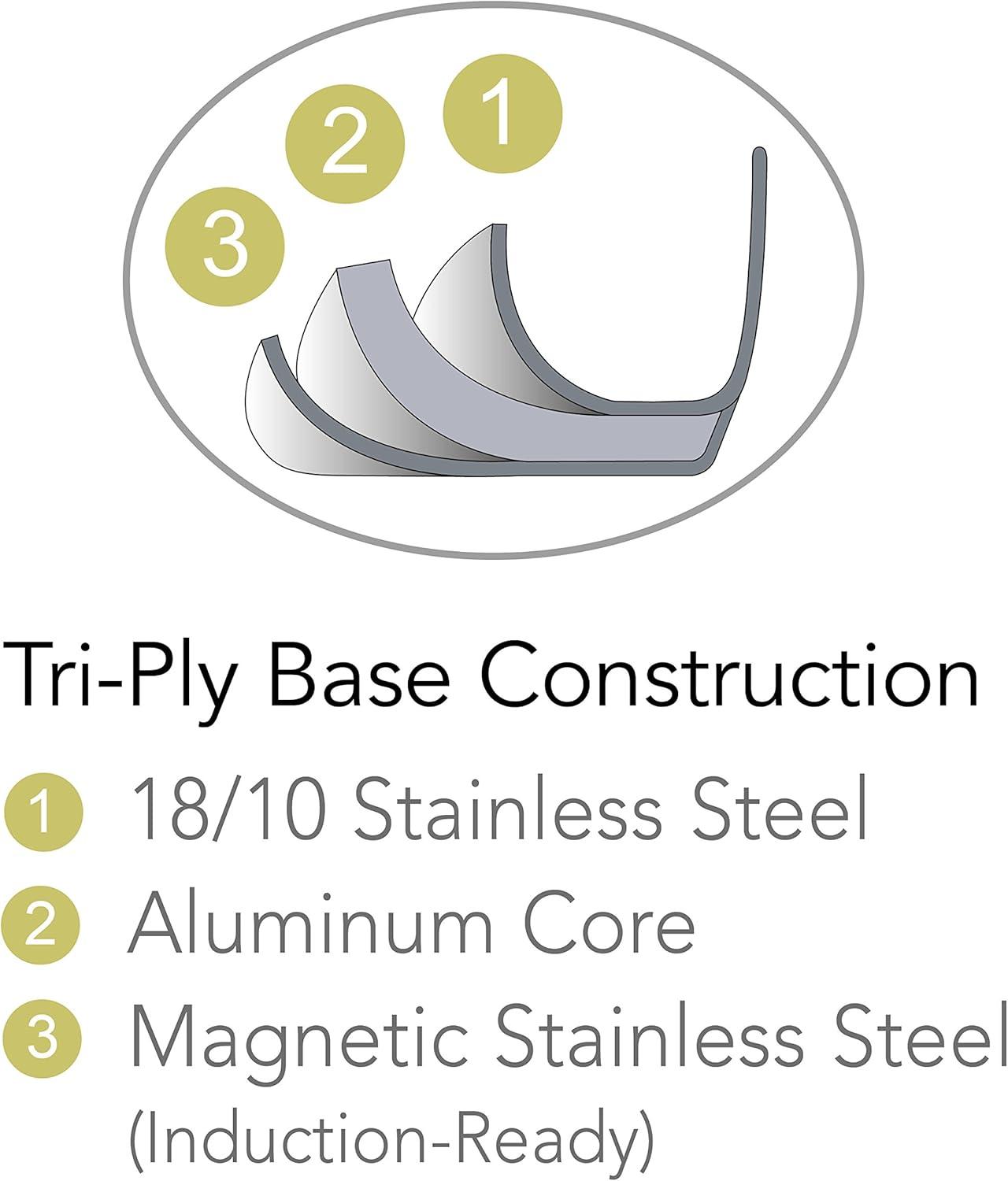 Tri-Ply Base: Features an impact-bonded tri-ply base for excellent heat distribution and even cooking, ideal for everything from a gentle simmer to a rapid boil.