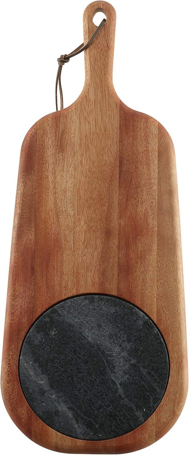 A cheese board is a great option for celebrating special moments. This convenient item is beautiful for serving, adding a rustic touch, personality and elegance to your reception. Tramontina's Provence 18.75 in x 7.5 in(48 cm x19 cm) African mahogany cheese board in wood and stone with handle offers even more: the stone is ideal for cutting high-quality soft cheese and the wood adds charm and sophistication to any room. The wood is sealed with palm oil, for a smooth surface, making it easier to clean. Made of reforested African mahogany, this board has an ergonomic handle for easy handling.