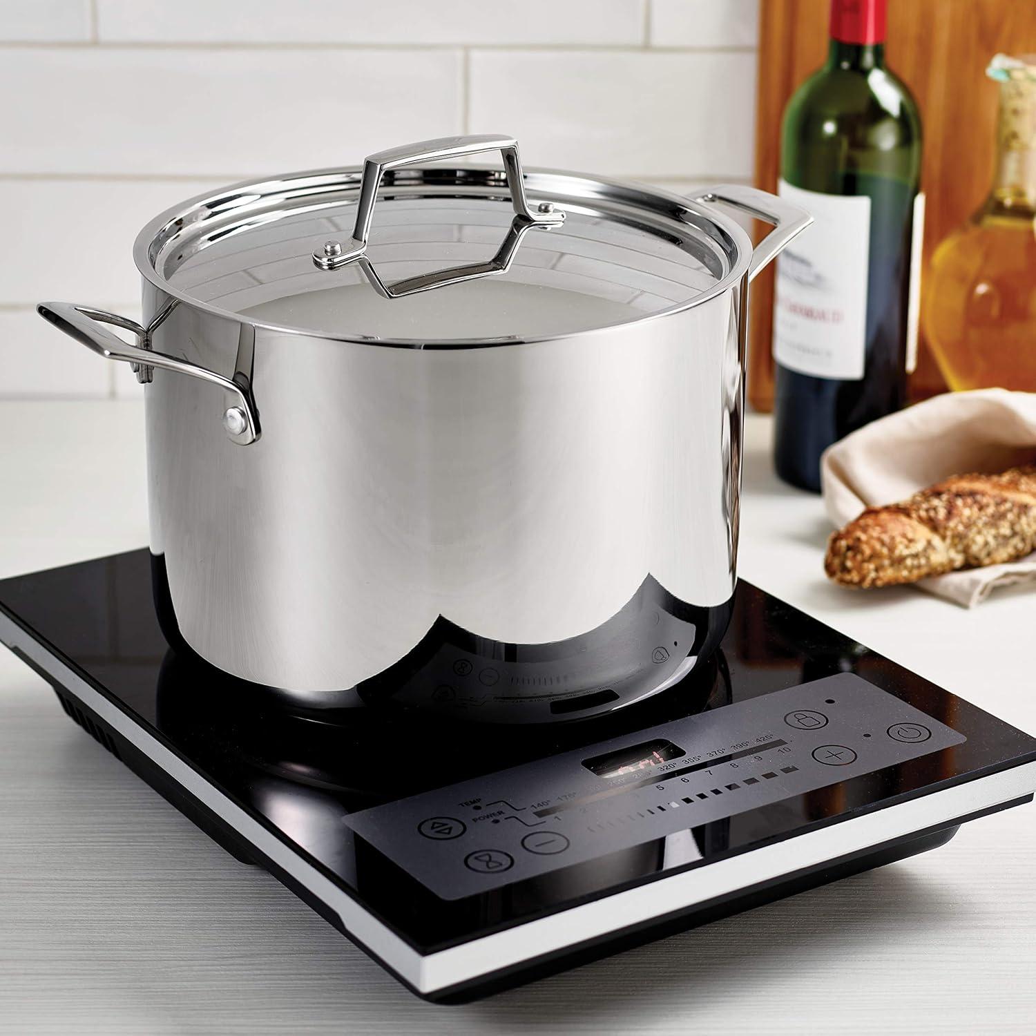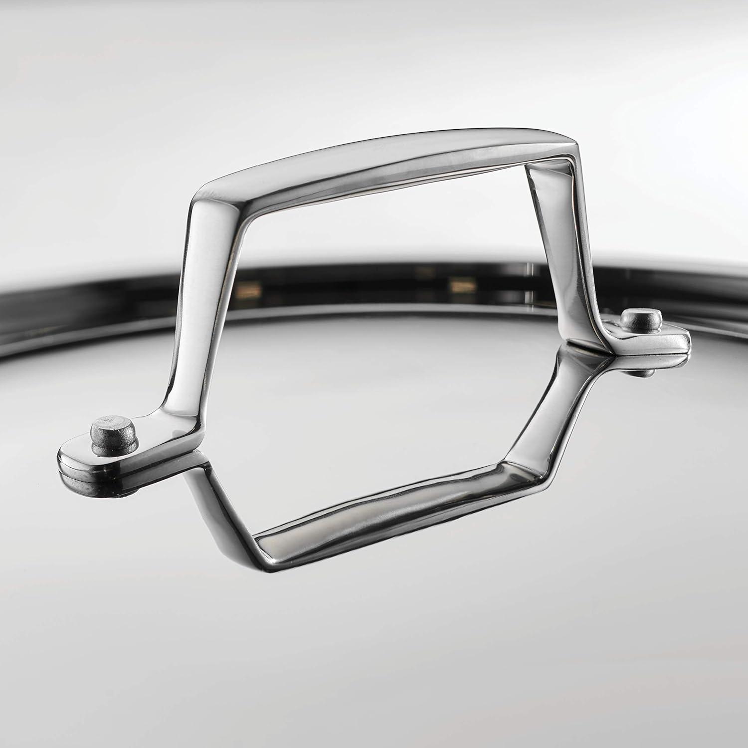 Tri-Ply Clad construction: 18/10 stainless steel, Aluminum core and Magnetic stailess steel (induction ready)