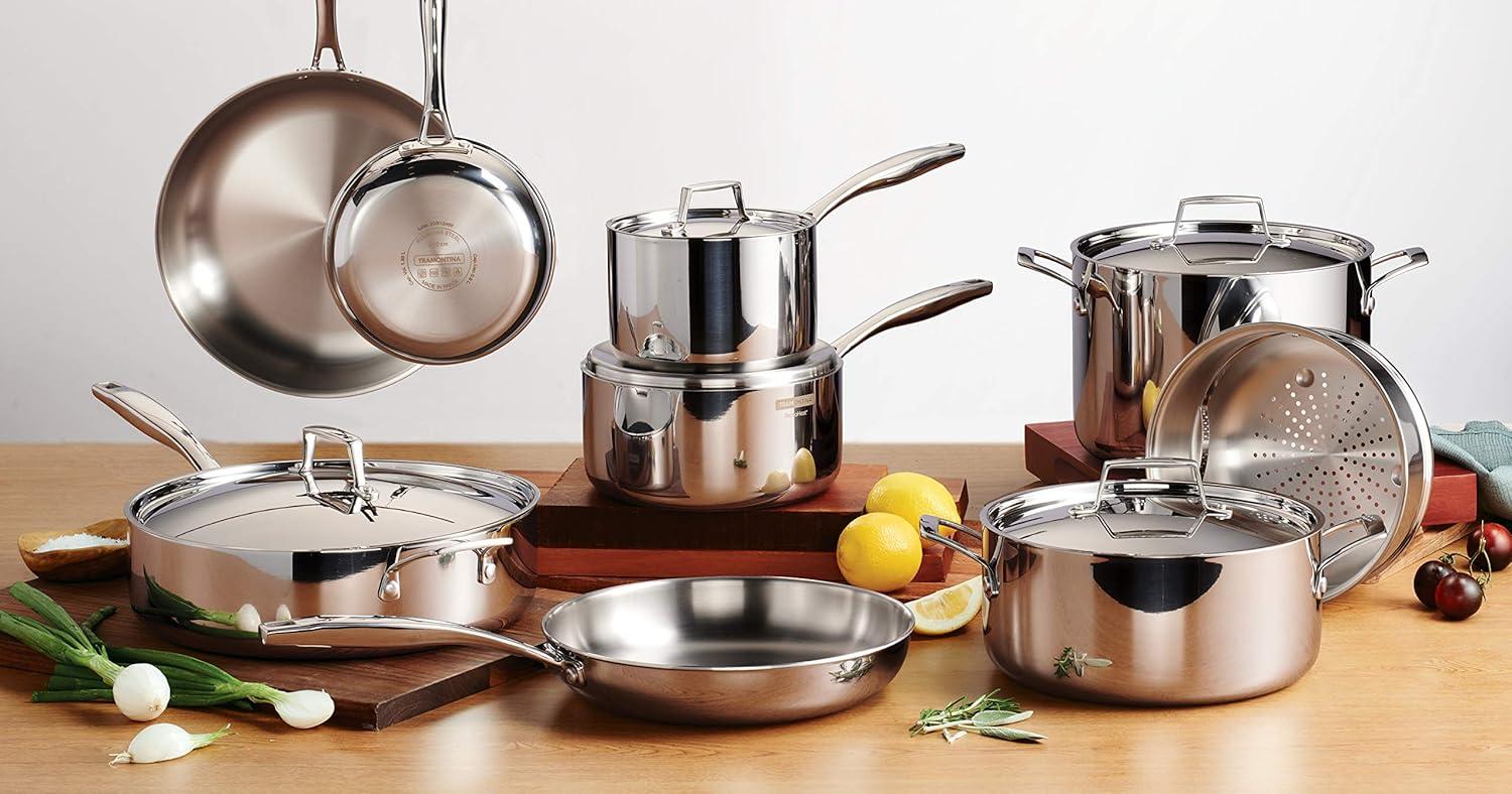Tramontina Signature Tri-Ply Clad Stainless Steel 12-Piece Cookware Set with Lids, Pots and Pans Kitchen Set, Induction-Ready, Dishwasher-Safe, NSF-Certified, Made in Brazil(12-Piece)