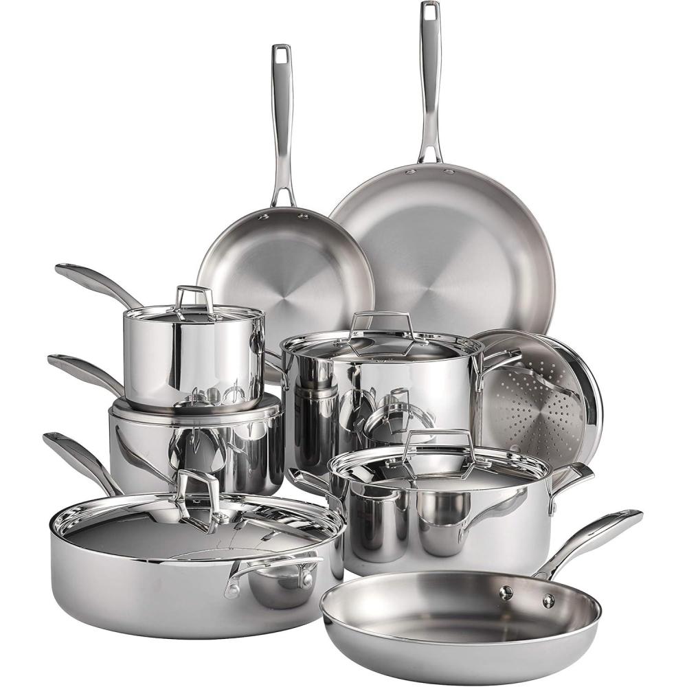 Tramontina Signature Tri-Ply Clad Stainless Steel 14-Piece Cookware Set with Lids, Pots and Pans Kitchen Set, Induction-Ready, Dishwasher-Safe, NSF-Certified, Made in Brazil(14-Piece)