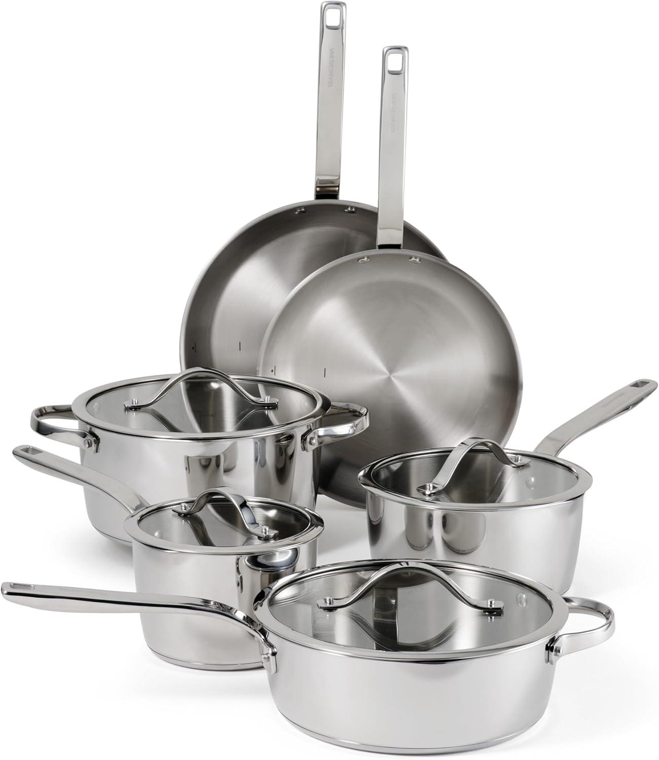 Designed for those who love to cook, entertain, and experiment in the kitchen, the Tramontina Tempo 10-Piece Cookware Set delivers the versatility, durability, and precision needed for every meal. Whether you’re searing, sautéing, simmering, or slow-cooking, this set equips you with the right tools to cook with confidence and ease. Each piece is crafted with tri-ply base construction, featuring an impact-bonded aluminum core that ensures fast, even heat distribution—eliminating hot spots and giving you consistent, flawless results every time. The 18/8 stainless steel cooking surface is non-reactive, keeping flavors pure, while the mirror-polished exterior adds a sleek, professional touch to your kitchen. Perfect for weeknight dinners, meal prep, and entertaining guests, this set is designed to keep up with you. Induction-ready and oven-safe up to 350°F, it transitions seamlessly from stovetop to oven. And when you’re done? It’s all dishwasher-safe for effortless cleanup. For home cooks who want high-performance cookware that keeps up with their passion, the Tempo 10-Piece Cookware Set is ready for any challenge. Set the pace. Own the kitchen.
