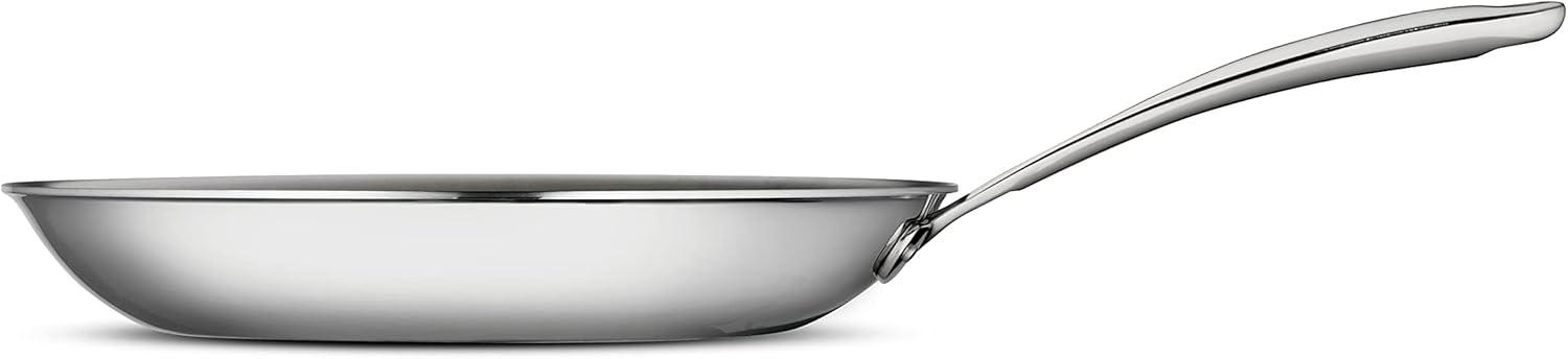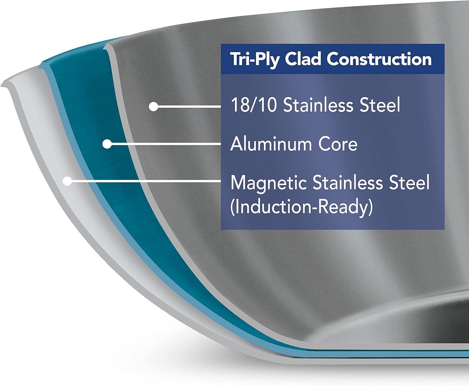 Tri-Ply Clad Construction: Features an aluminum core for even heat distribution and precise cooking control