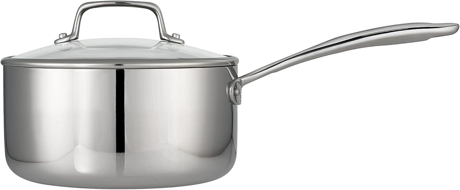 Tramontina's 10 Pc Tri-Ply Clad Stainless Steel Cookware Set includes the essentials to equip your first kitchen, update your current one, or whip up your favorite recipes. The premium 18/10 stainless steel set features tri-ply clad construction for even heat distribution from all sides of the pan. In addition, its magnetic stainless-steel exterior is compatible with any professional or household induction cooktop, provides exceptional cooking performance on conventional gas, electric and ceramic glass cooktops, and is oven safe up to 350°F /176°C. Tempered glass lids help to lock in flavor and monitor your cooking progress, while ergonomically designed cast stainless-steel handles are riveted for easy handling. Made of premium materials, the assortment in the set includes essential quality cookware pieces for any gourmet kitchen, constructed for unparalleled performance and durability that will last a lifetime. Made in Brazil.