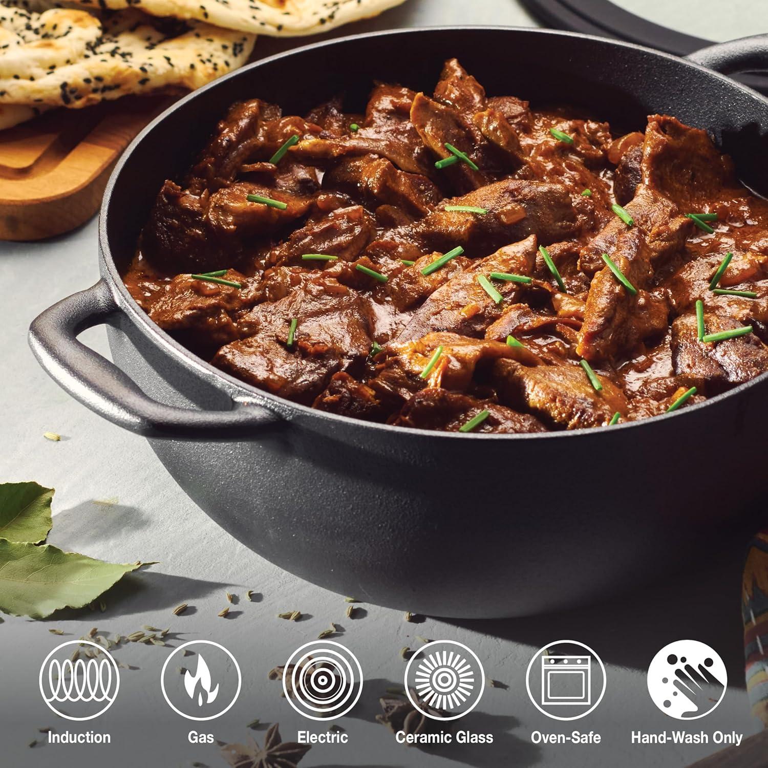 Heavy-Duty Cast Iron Construction: Built for durability, this cast iron kadai provides superior heat retention and even cooking for excellent results every time.
