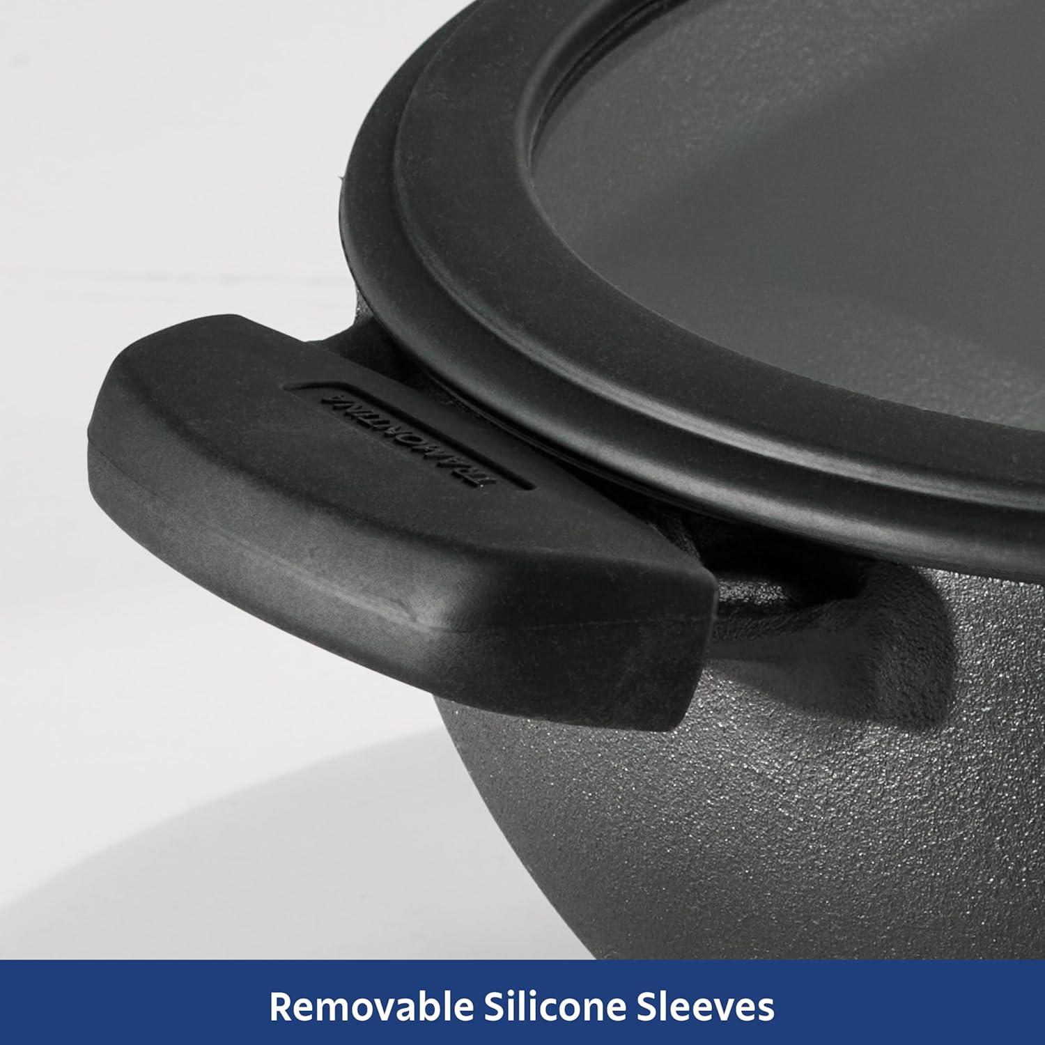 Tempered Glass Lid & Heat-Resistant Silicone Sleeves: The shatter-resistant lid features a black natural silicone rim for a tight seal, while silicone sleeves provide a secure, comfortable grip and heat resistance up to 450°F.