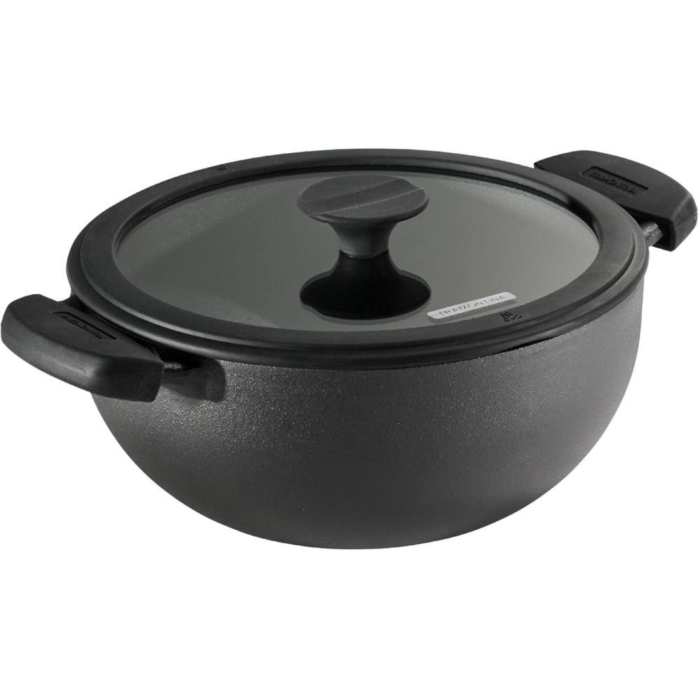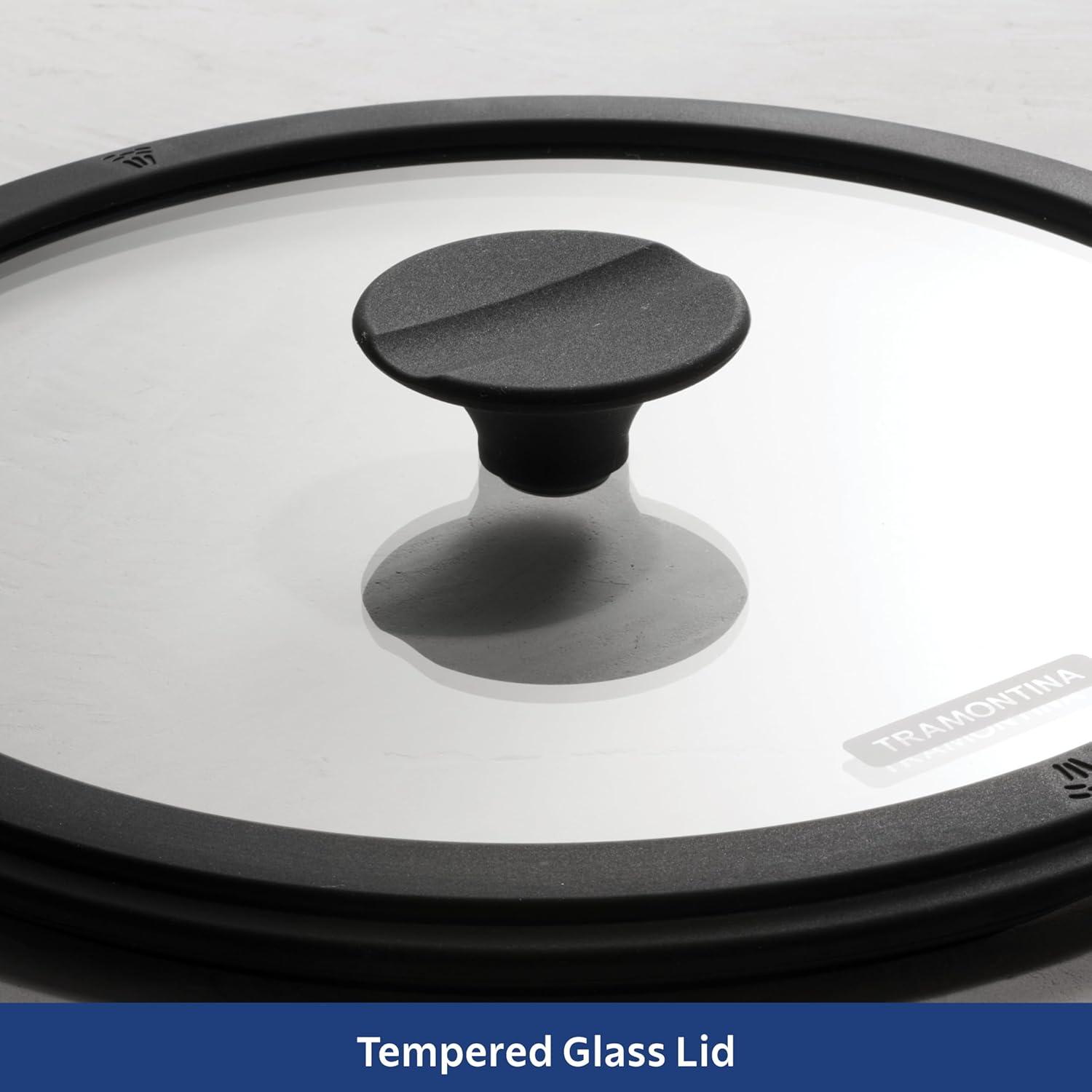 The Tramontina Utsava 2.3 Quart Cast Iron Kadai delivers superior heat retention and even cooking. Made from heavy duty cast iron, it is perfect for curries, stir-fries, and deep-fried snacks. The pre-seasoned surface improves with use, while the stone-ground smooth interior enhances food release. A shatter-resistant tempered glass lid with a silicone rim locks in moisture and allows easy monitoring. This versatile kadai works on induction, gas, electric, and ceramic cooktops and is oven safe up to 450 degrees Fahrenheit without the lid and 350 degrees Fahrenheit with the lid. The unibody cast iron handles ensure a secure grip for easy handling.