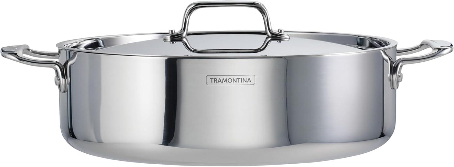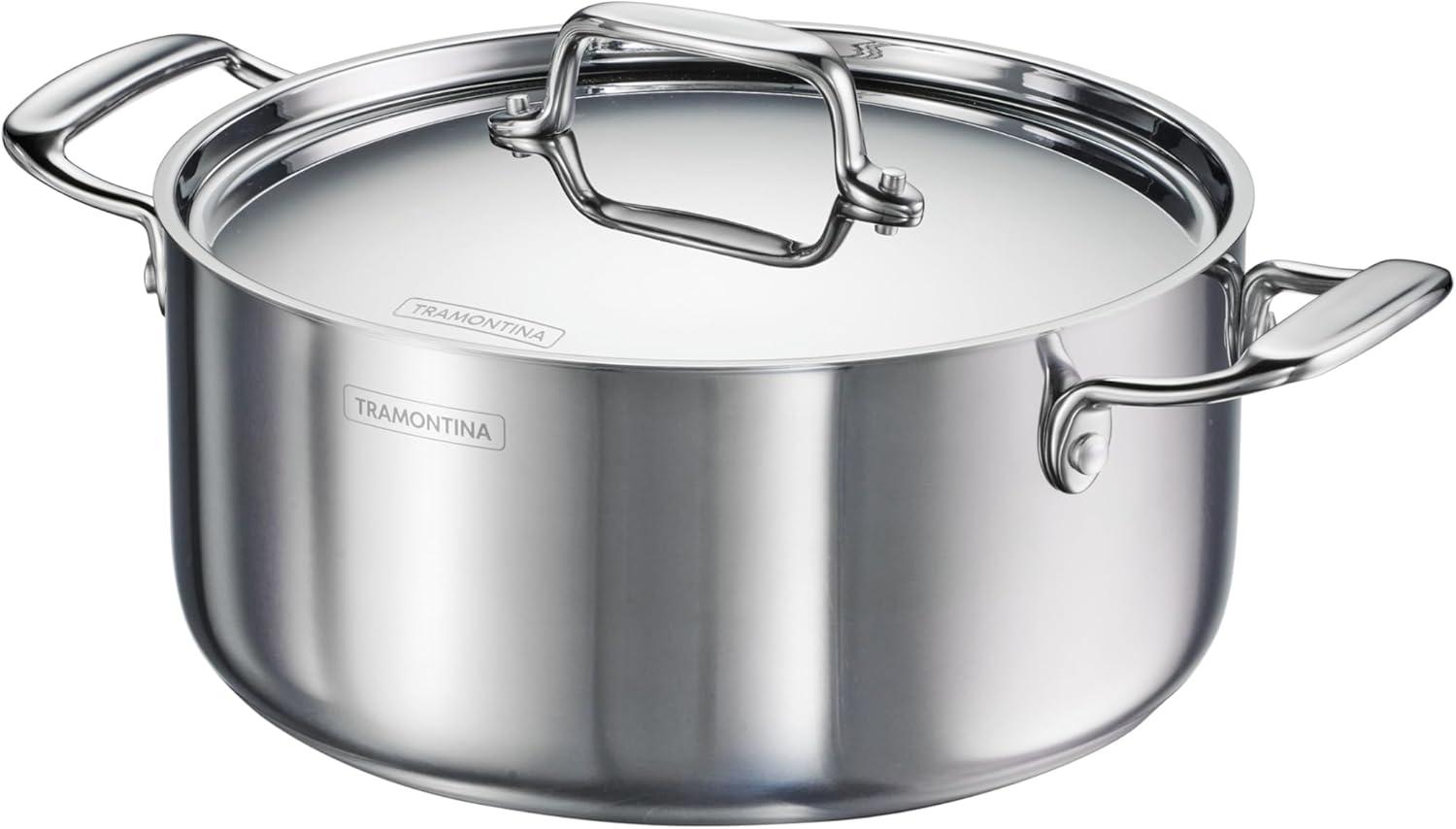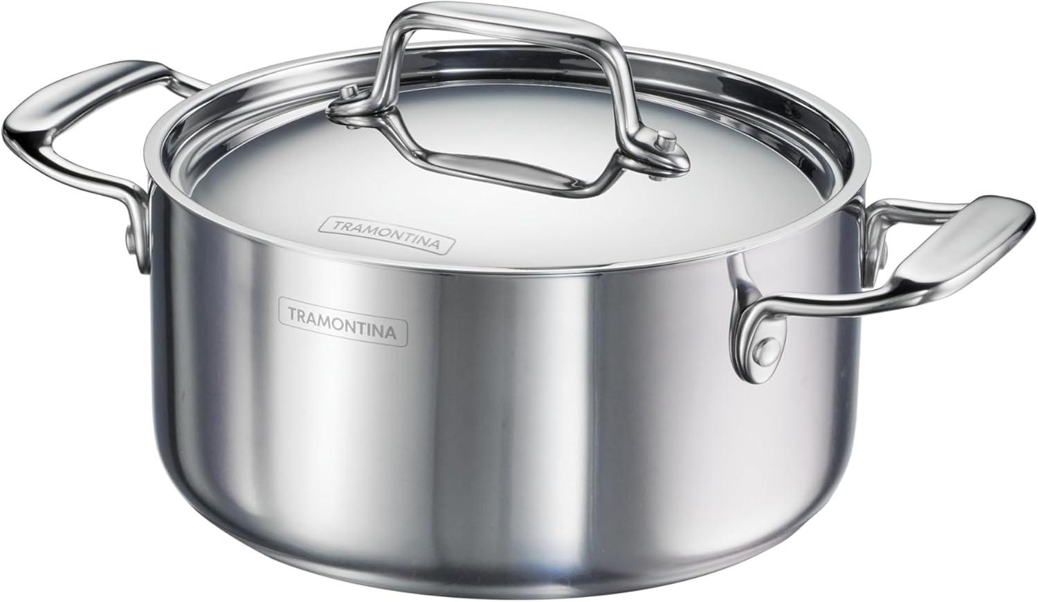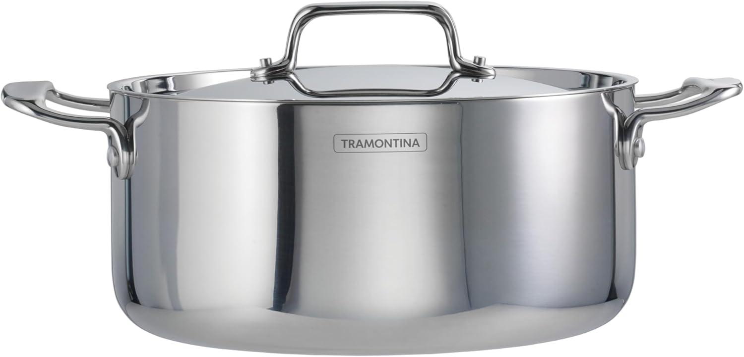 The Tramontina 3.25-Quart Casserole with Lid (Small Dutch Oven Pot) is ideal for efficient, small-batch cooking and concentrated sauces. Engineered for superior performance, this all-clad pot is built with Tri-Ply Clad Stainless Steel featuring a fast-heating aluminum core nestled between durable stainless steel layers, which guarantees quick and even heat distribution across the entire cooking surface. The interior is finished with a smooth, high-quality ceramic nonstick coating, which ensures easy food release and effortless cleanup. The pot's size is perfectly suited for preparing sauces, simmering soups, cooking rice and grains, or preparing a main course for 1 to 3 people. Its excellent heat retention makes it ideal for slow cooking in the oven. Designed for versatility, this cladded pot is compatible with gas, electric, ceramic glass, and induction cooktops and is oven-safe up to 500°F (260°C). It is dishwasher-safe for convenience, though handwashing is recommended to maintain the nonstick coating's longevity.