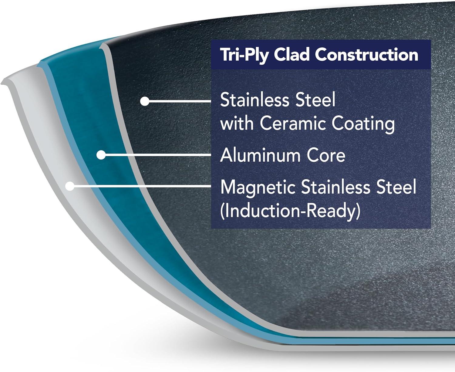 Tramontina Utsava Tri-Ply Clad Stainless Steel 2.9-Quart Saute Pan with Lid and Ceramic Non Stick Interior, Induction-Ready Cooking Pan(Ceramic)