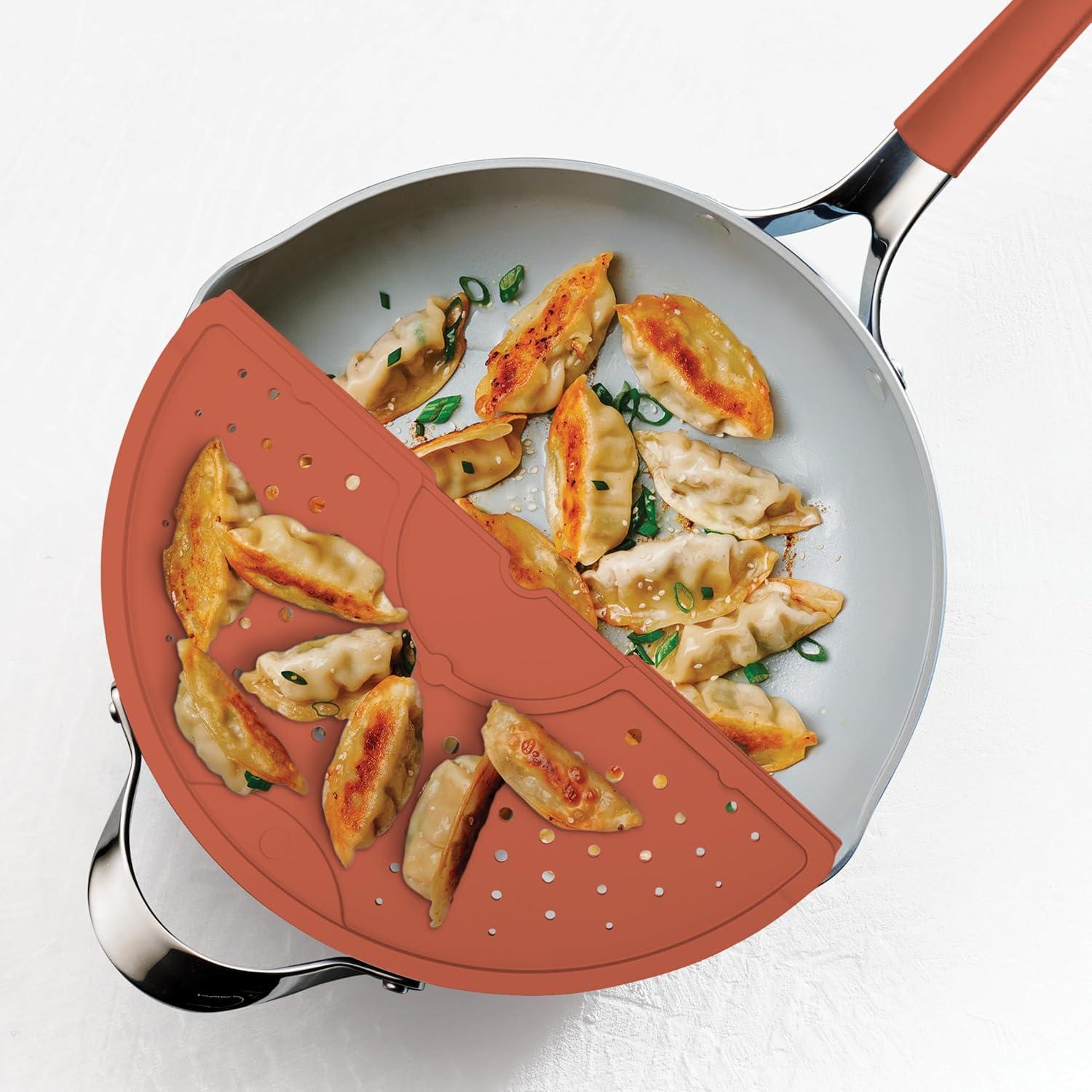 Clever Lid with Spoon Rest: Includes a glass lid with a stainless steel handle designed to also function as a convenient spoon rest.